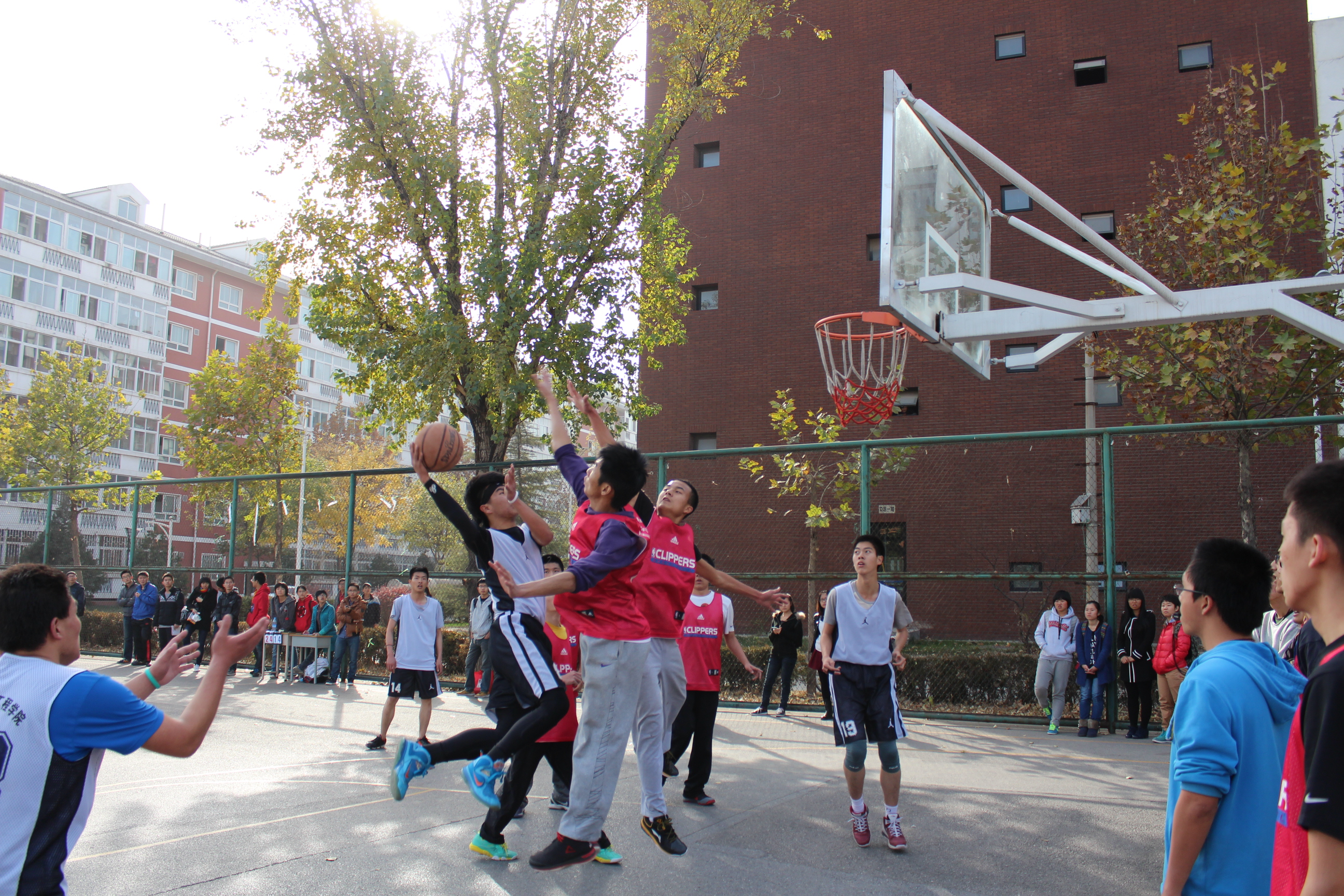 此次“新生杯”决赛采用三局两胜赛制,比赛分别于11月14日、15日、18日和20日中午在我校篮球场举行,每场比赛的竞争都异常激烈,观众的热情也十分高涨。