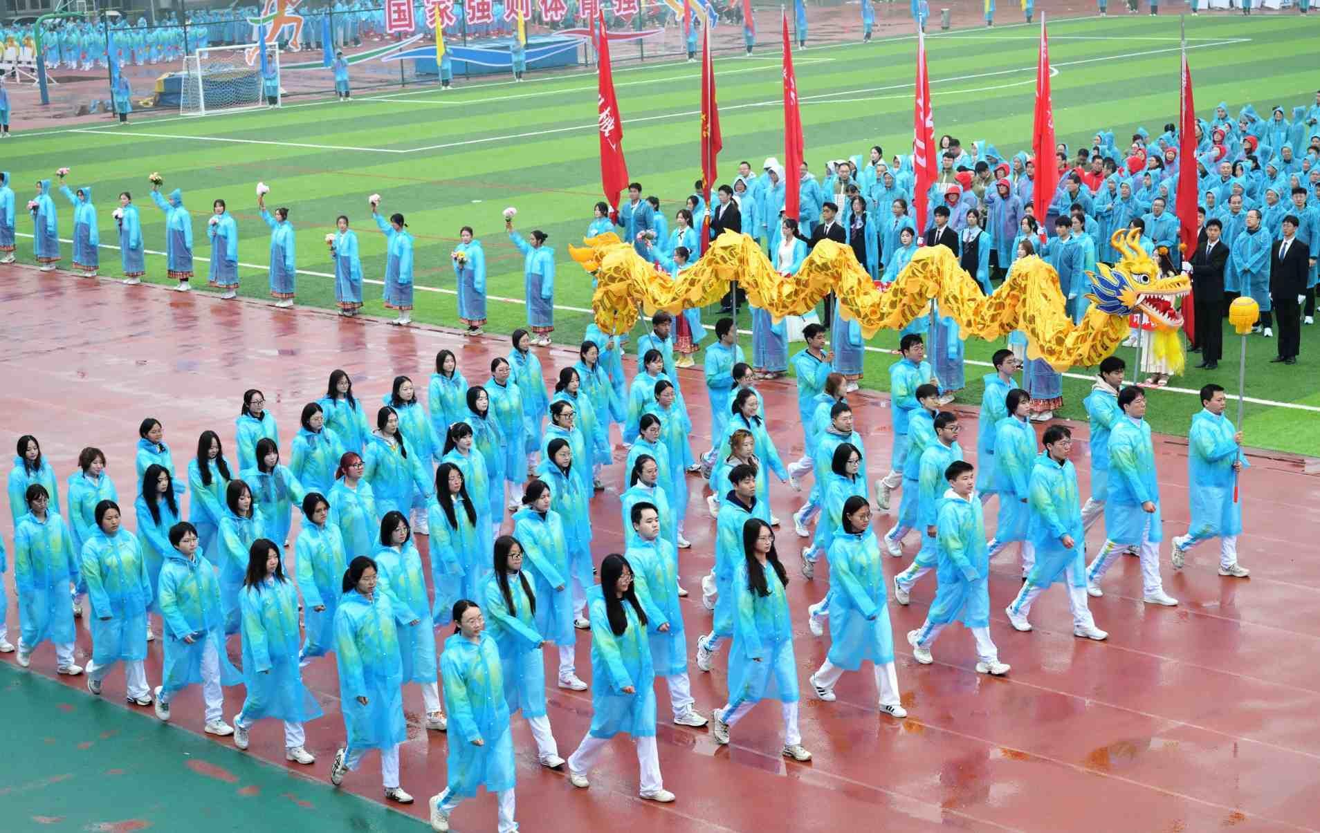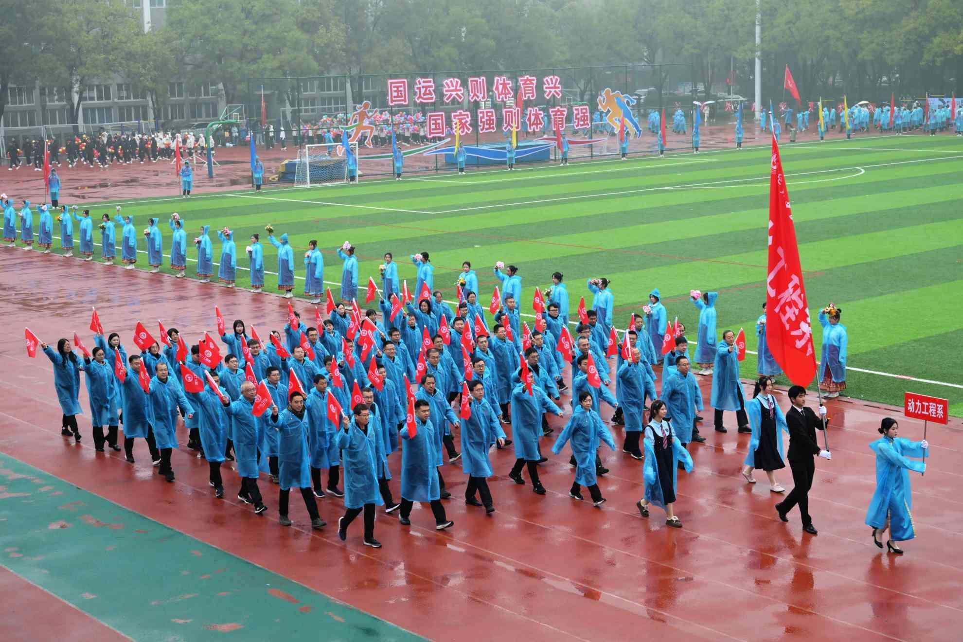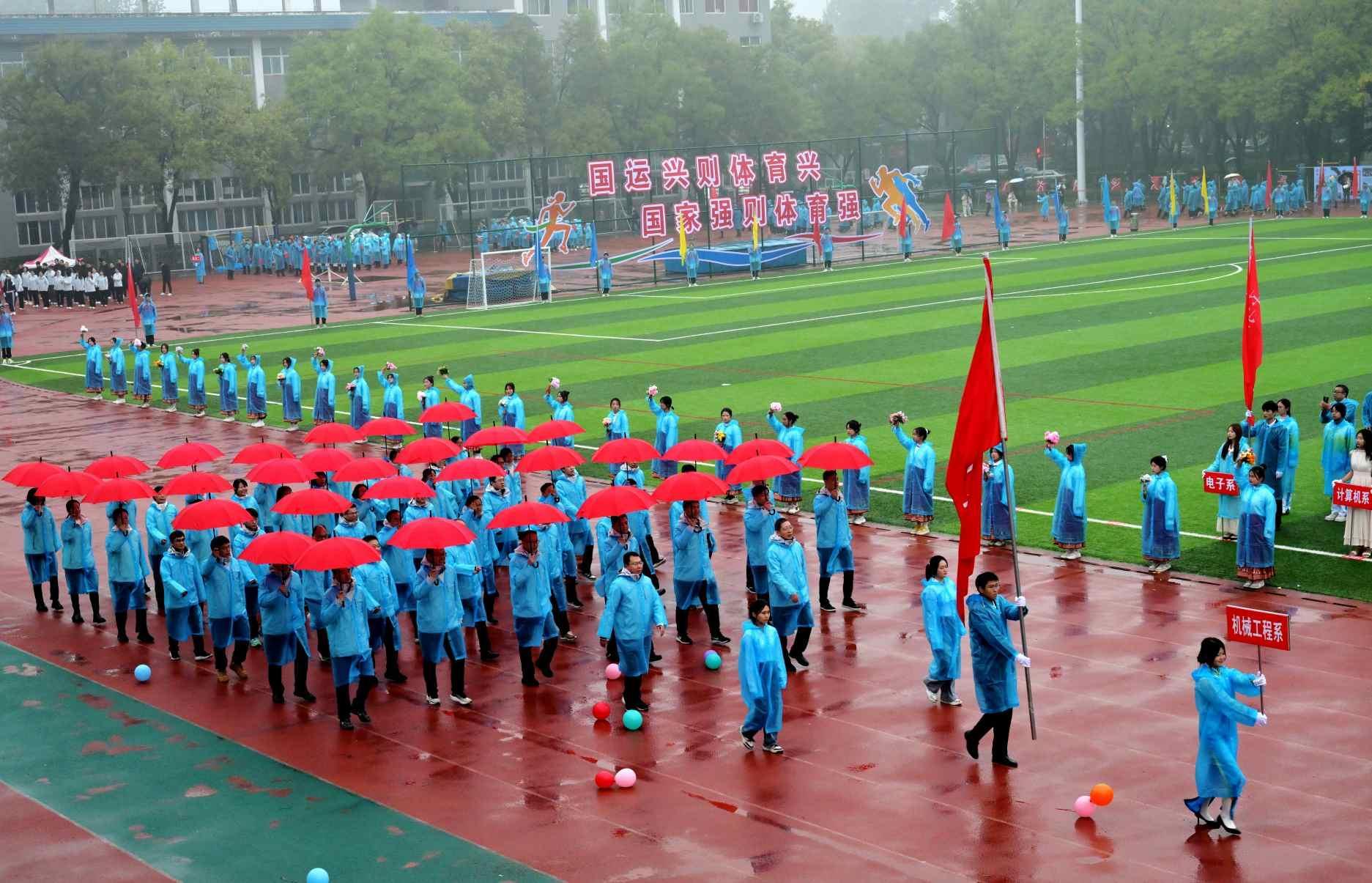 发令枪响穿透雨幕,助跑、起跳、冲刺,每一幕都是倔强的姿态。观台的呐喊织进雨丝,与彩旗共舞。这场雨中盛会,恰是青春最热烈的注脚。