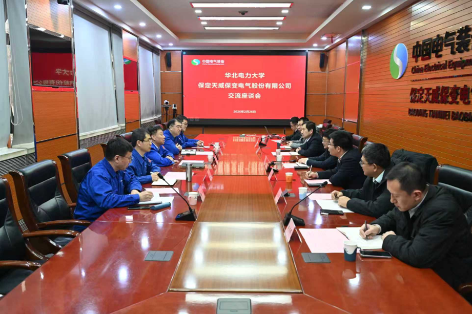 本网讯:为进一步深化落实学校与中国电气装备集团有限公司战略合作协议,2月26日下午,校党委常委、副校长刘云鹏赴天威保变电气股份有限公司开展调研交流。公司党委书记、董事长许涛和党委副书记、总经理刘东升出席活动。