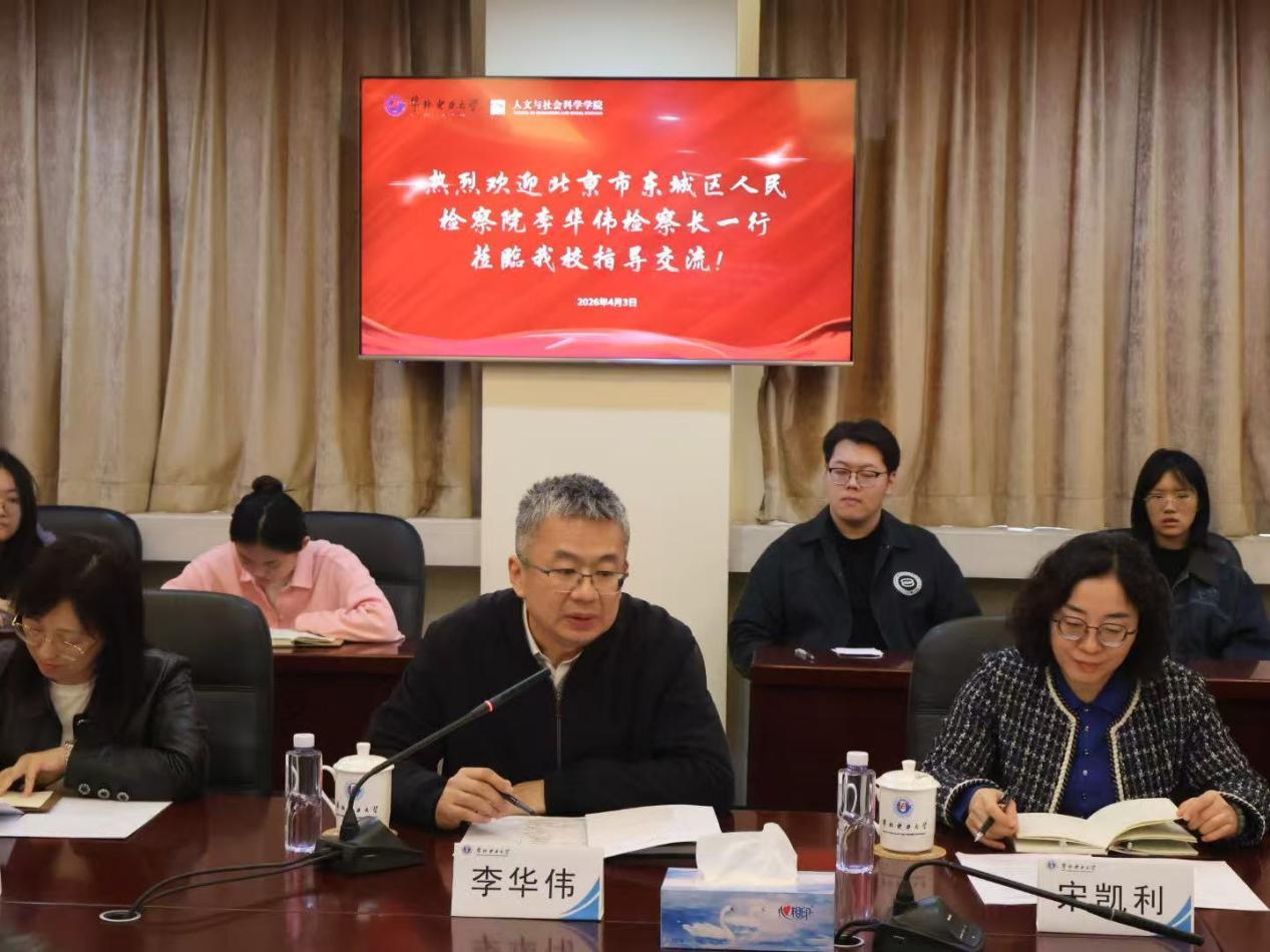 檀勤良对北京市东城区人民检察院各位同志的到来表示欢迎,他简要介绍了学校的办学历史、学科建设、人才培养、科技创新及社会服务等方面的成效。他指出,作为教育部直属全国重点大学,以及国家“211工程”“985工程优势学科创新平台”和“双一流”建设高校,我校在能源电力领域深耕多年,底蕴深厚、发展空间广阔。他强调,学校在推动文科建设与能源电力学科深度融合方面的积极实践探索,希望双方以此次交流为契机,在人才培养、理论研究和决策咨询等方面进一步深化合作。