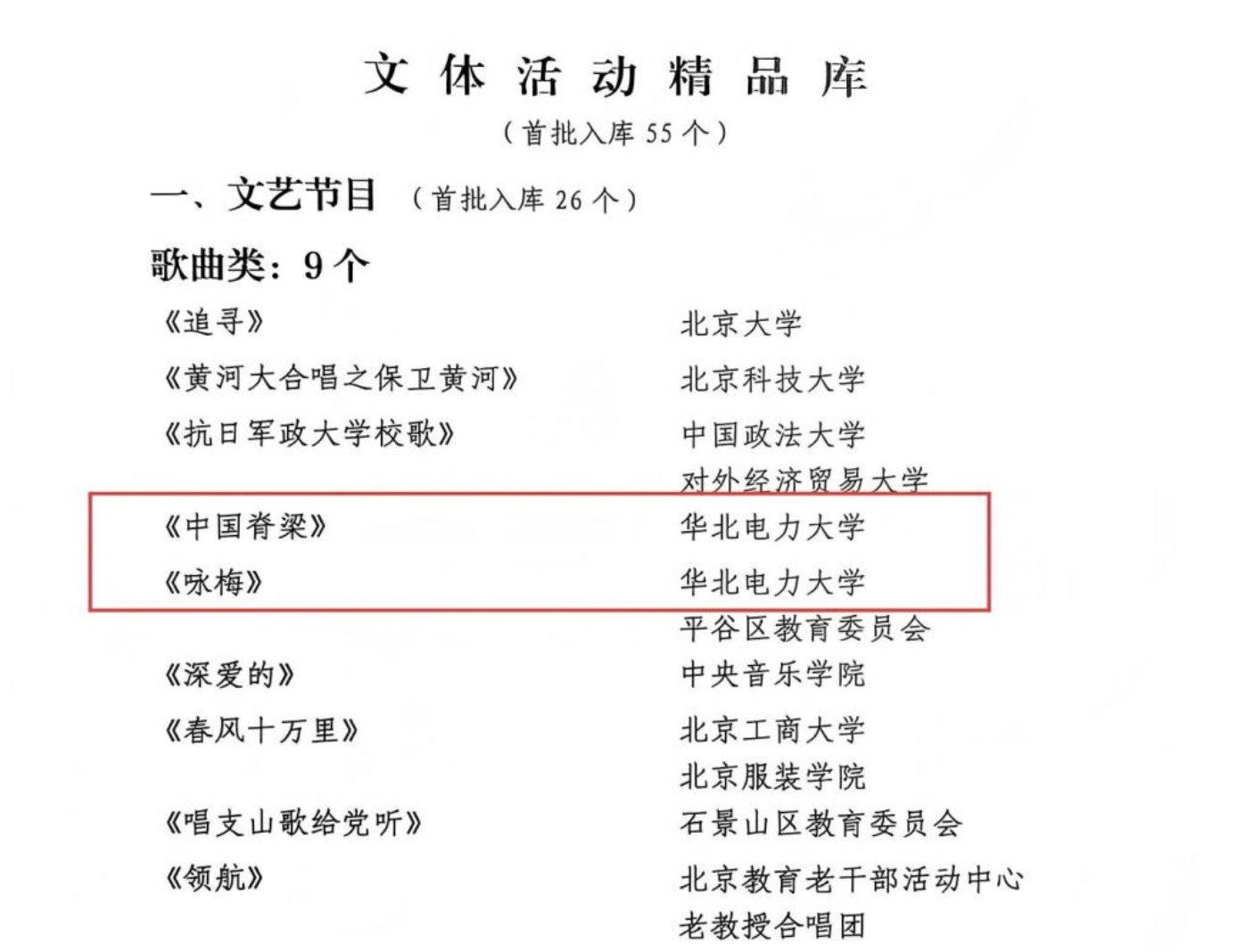 我校离退休工作处申报的歌曲《中国脊梁》《咏梅》和健身操展示等三项作品,入选北京教育系统离退休干部首批文化活动资源库。这是北京教育老干部活动中心系统梳理并整合长期积累优质资源,创新构建的包括夕拾讲堂、骨干队伍人才等三大特色资源库之一。