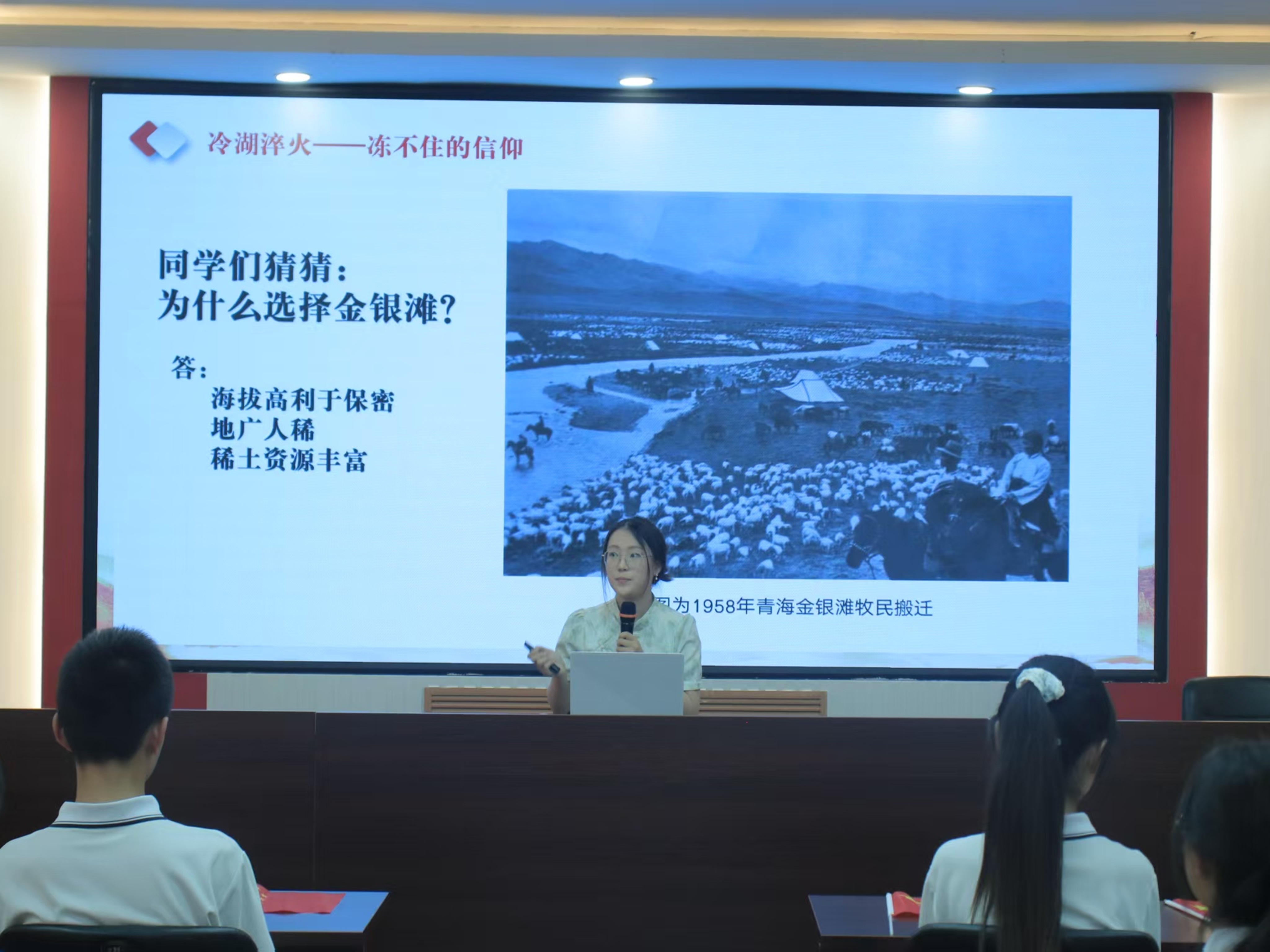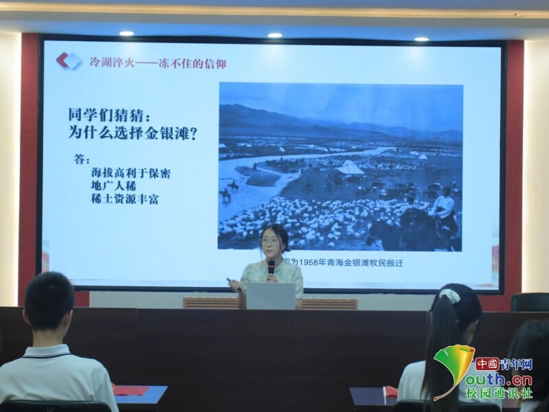 讲解员向同学们分享金银滩“消失”之秘。