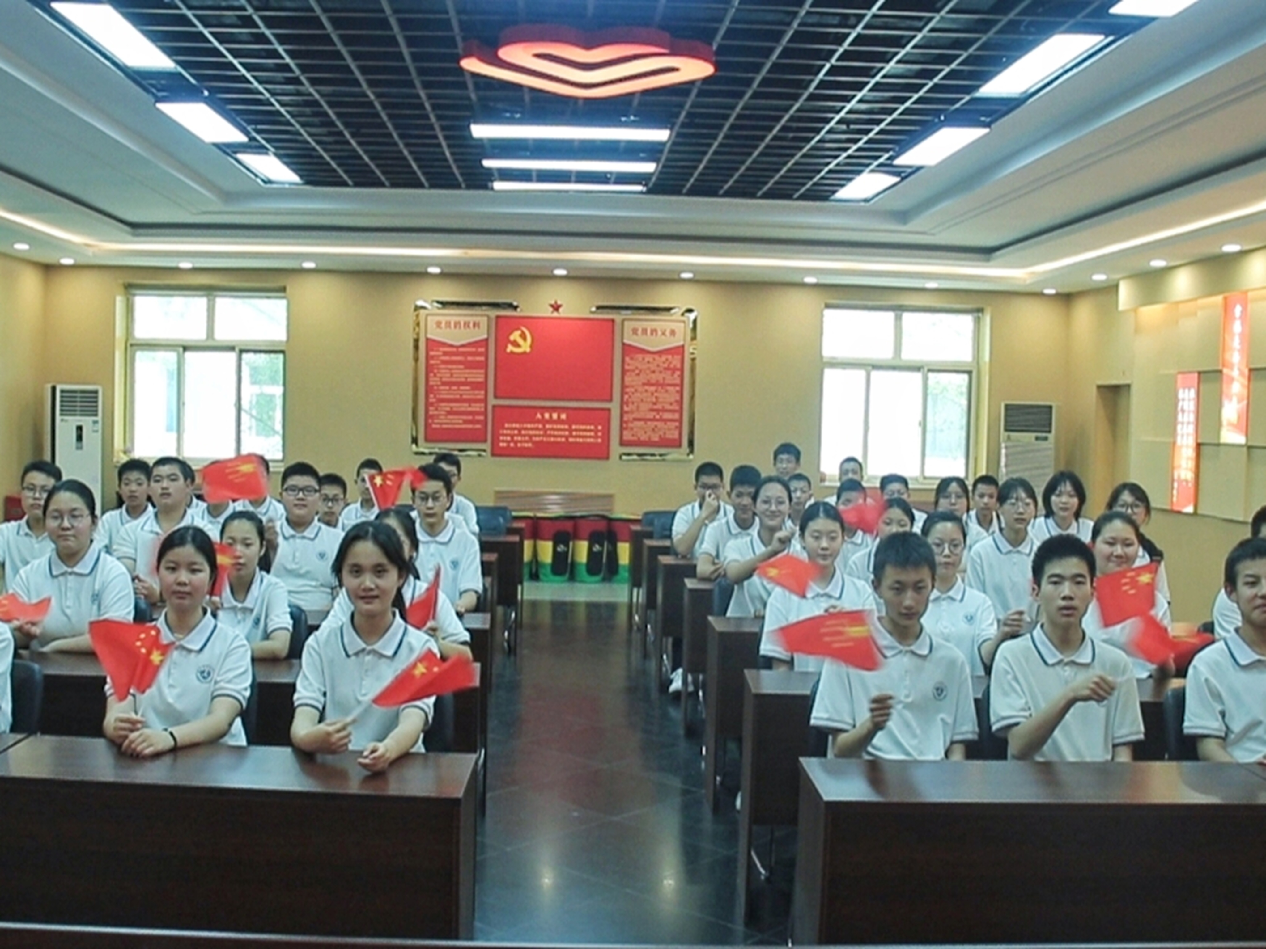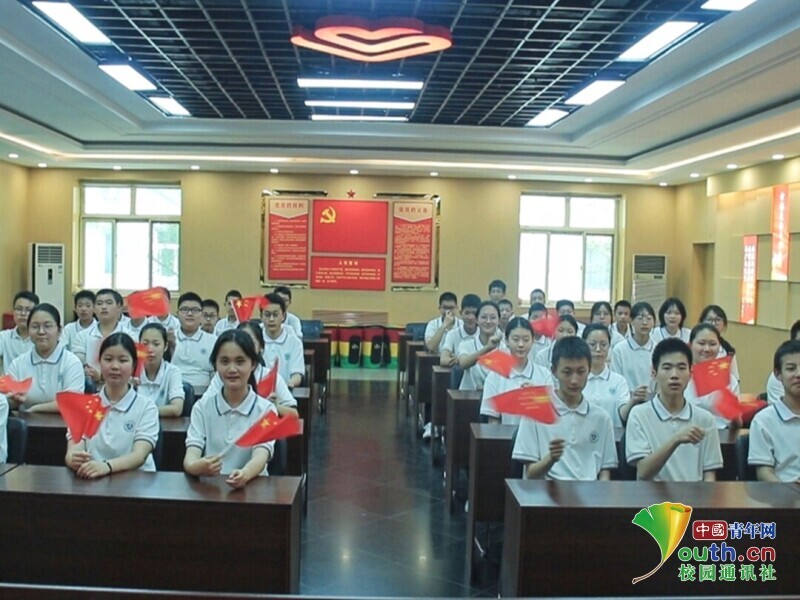 同学们一起摇旗呐喊。