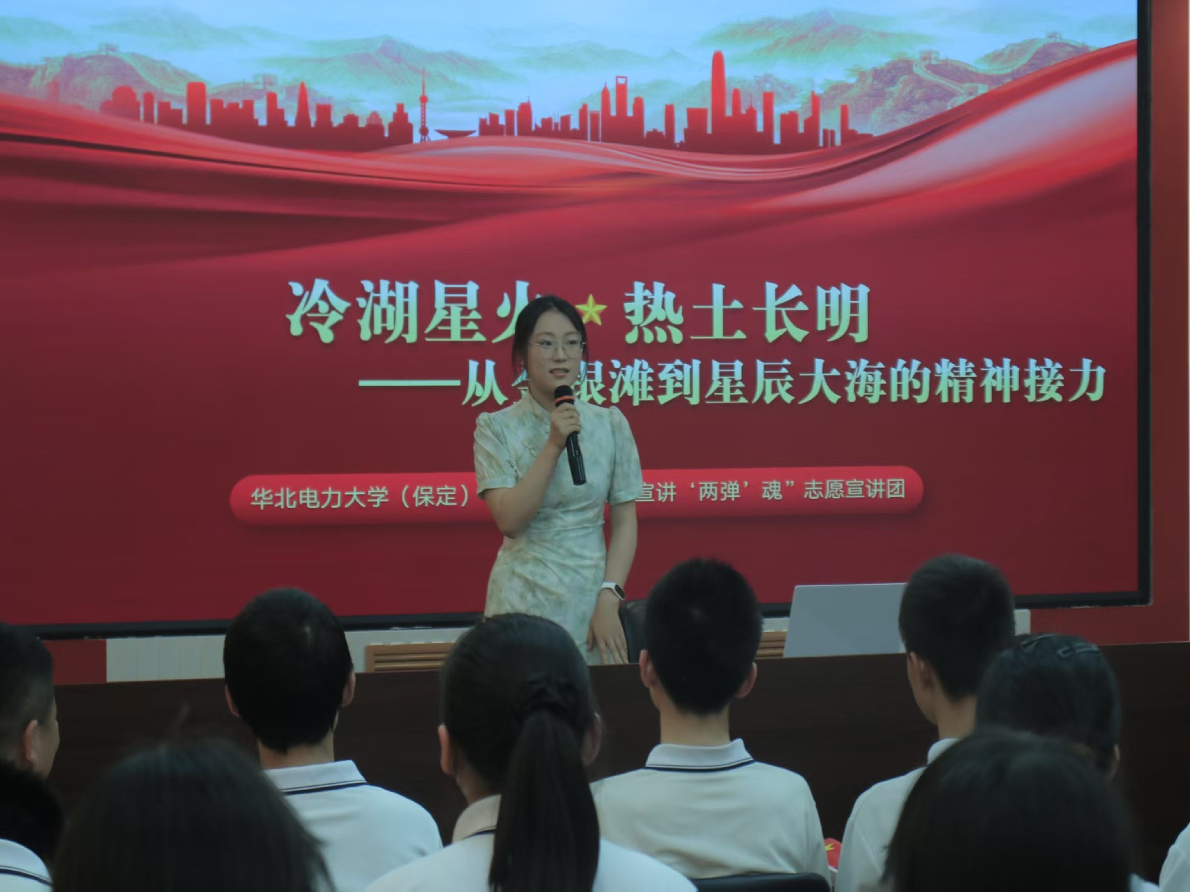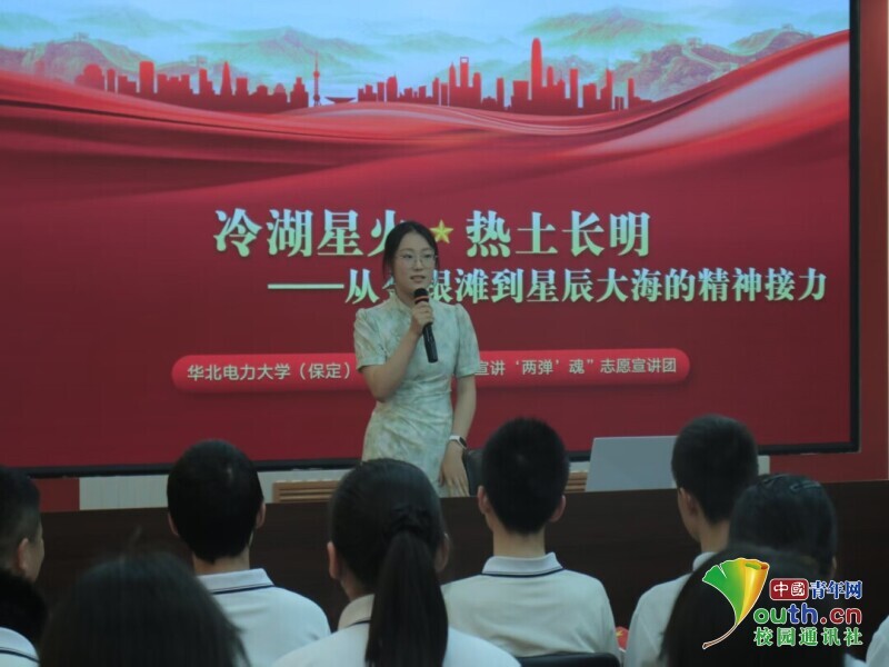 7月10日,华北电力大学(保定校区)青协“追寻先锋路,宣讲‘两弹’魂”暑期社会实践团队在河北省保定市电力学院社区面向50名初中生开展主题宣讲活动。实践队以“冷湖星火 热土长明——从金银滩到星辰大海的精神接力”为主线,用PPT展示了青海金银滩与海南文昌发射场的对比图景,从1958年牧民为221厂紧急搬迁的故事讲起,讲述科学家们在零下30℃的极寒中,用抹羊油的算盘、藏文经卷草稿纸手算核弹数据的坚守,以及邓稼先在忠孝难全时的抉择与核爆成功时科研人员的激动;再到文昌发射场平均年龄32岁的工程师们用代码替代算盘、以高科技延续“把后背交给战友”的信任,接力航天事业的故事。通过历史影像,互动问答等形式展示从王淦昌那辈“让中国站起来”的信念,到新一代“领跑太空探索”的追求,让同学们真切感受青少年始终传递的精神热量,明白“两弹一星”精神从未远去,作为新时代青少年,要延续这份信仰,以行动诠释担当,刻下属于中国的炽热刻度。