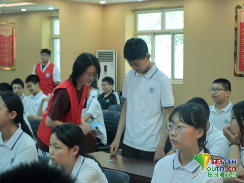 有奖问答环节现场,同学们积极回答讲解员的问题,实践队员分发奖品。