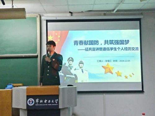 课堂上宣讲成员还着重聚焦同学们关心的问题,对当前大学生征兵入伍政策进行了全面解读,号召广大学子树立爱国情怀,秉承华电精神,积极投身军营,为国家的国防事业建设和发展贡献自身力量。