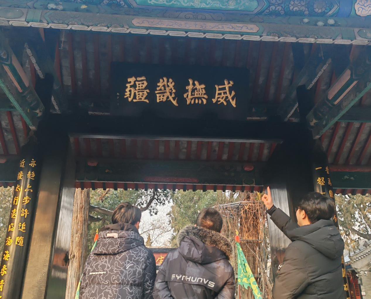 图为实践队员在保定直隶总督府匾额前“赏匾迎春”。