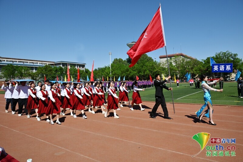 图为校旗方队出场合照。中国青年网通讯员 王心蕊 供图