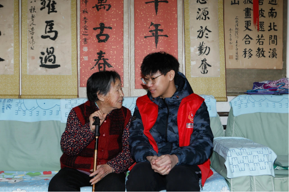 图为“新时代小分队”实践队员与“革命奶奶”亲切交谈。中国青年网通讯员 王乐乐 供图