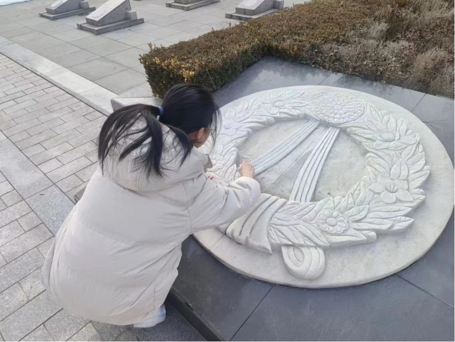 图为“红心向党”实践队员在冀南烈士陵园,擦拭烈士墓碑。中国青年网通讯员 王乐乐 供图