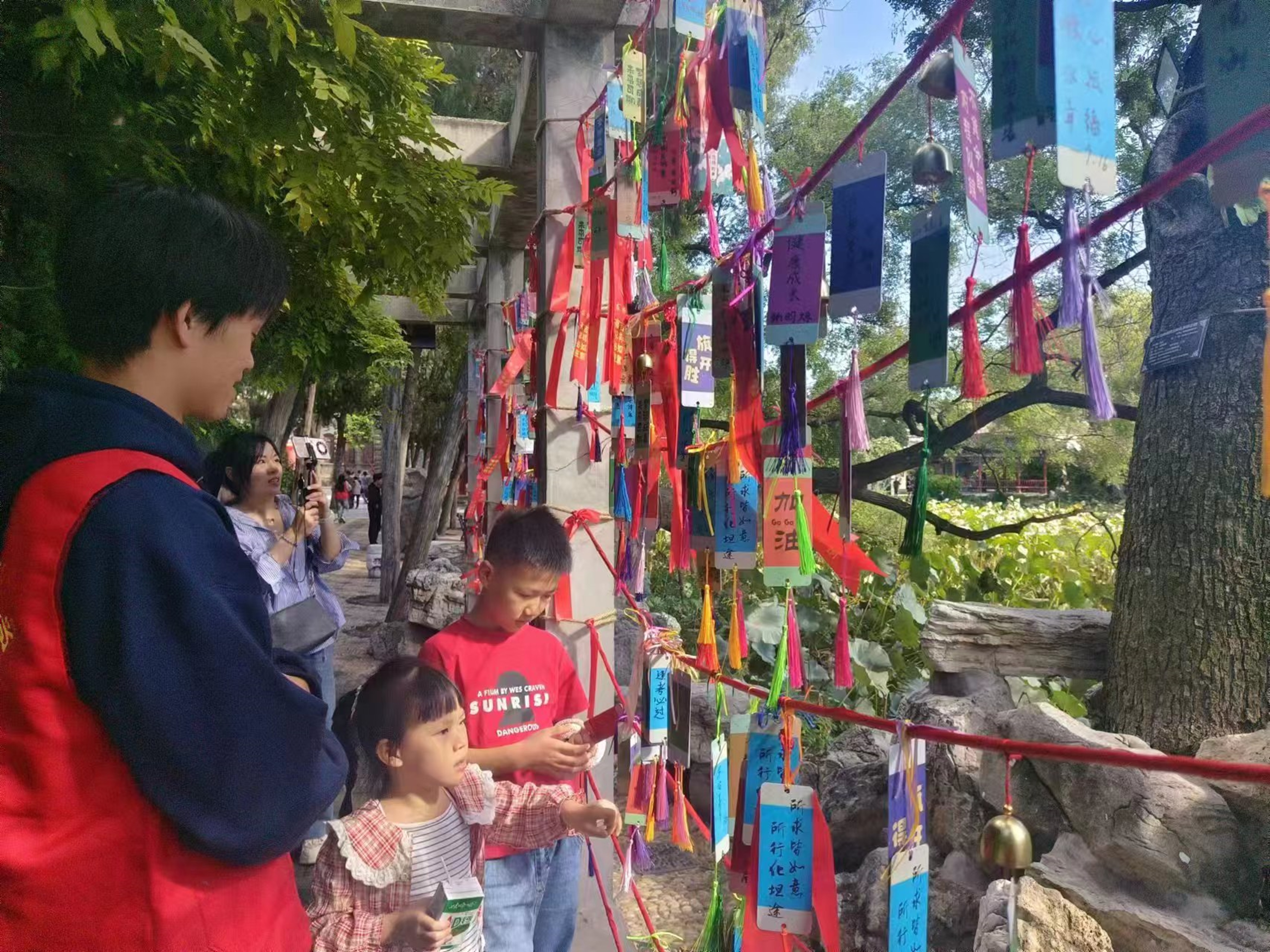 10月1日,山河向荣,与国同庆。在各地积极庆祝新中国75周年华诞之际,河北省保定市也迎来了旅游热潮,各大景区人潮涌动活力足。为向中外游客介绍文明保定,倡导文明旅游,展现新时代保定形象,并通过游客的体验和口碑,提高保定的知名度,宣传城市金名片,同时肩负起作为保定市志愿服务理事单位的责任,华北电力大学(保定)青年志愿者协会积极响应中共保定市委社会工作部的相关安排,组织“文明旅行,志愿同行”2024年国庆节文明旅游志愿服务活动,经过严格筛选和培训,选派13名青年志愿者在古莲花池志愿服务站点向游客提供志愿服务,以青春力量助力保定建设京津冀世界级城市群中的现代化品质生活之城。(通讯员 廖世涛)
