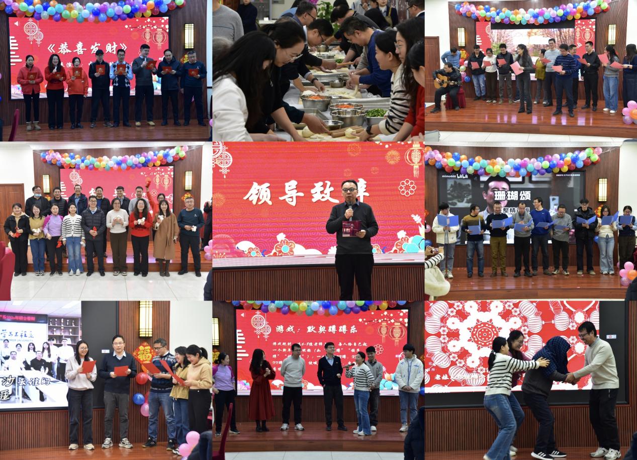 联欢会中还穿插了多项趣味互动游戏与激动人心的抽奖环节。“默契蹲蹲乐”“幸运气球踩踩乐”等游戏设计巧妙、参与性强,老师们踊跃上台、欢乐竞技,现场笑声不断、气氛热烈,惊喜与欢呼此起彼伏,将晚会一次次推向高潮。晚会结束后,系里还组织了迎新年包饺子活动。老师们围坐一起,和面、擀皮、包馅,在亲手制作传统美食的过程中交流情感、共话未来。