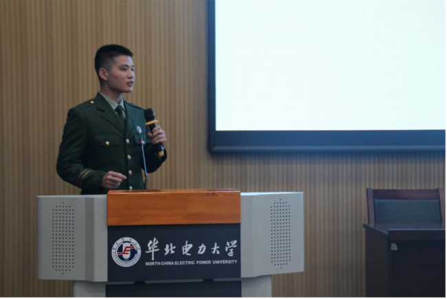 征兵入伍宣讲环节中,胡雅元从利国、利军、利家、利己多个角度向同学们阐述了大学生征军入伍的益处,号召同学们主动把握机遇,积极应征入伍。刘恒和杨兰千祥两位同学结合自身参军入伍经历,展现了部队给自己带来的塑造和改变,并向同学们介绍了相关入伍事宜以及退役后的优惠政策。