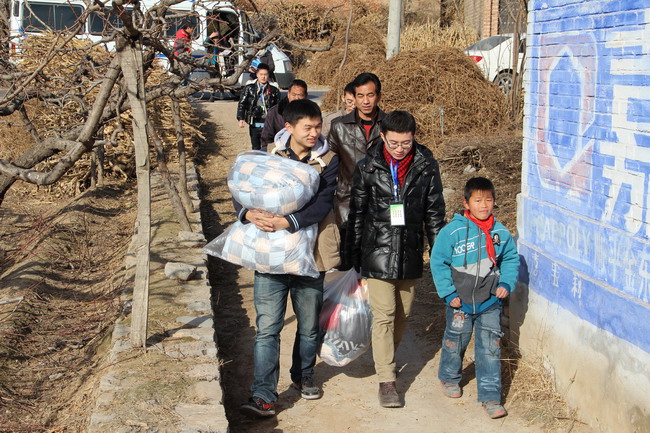 课后,志愿服务小分队在西白司城小学校长石德才的带领下,来到王雨涵、王江昊、杨润锟、王佳颖四位贫困学生家中,送予其爱心过冬物资。这几户家庭有的亲人患病,耗费了全部积蓄;有的缺少劳动力,仅靠打零工维持生活,家庭经济每况愈下。不幸的经历使几个家庭蒙上了一层雾霾,孩子幼小的心灵感到深深的无助。在志愿者们的鼓励下,孩子们有了对未来的憧憬和希望,知晓了有诸多好心人在关注他们的成长。看到孩子们脸上发自内心的笑容,志愿者们却不免感到心酸,有志愿者表示:“参加过一次活动后,就由衷感到此类活动的必要性,应该让更多的人参与到传递温暖的队伍中来。”