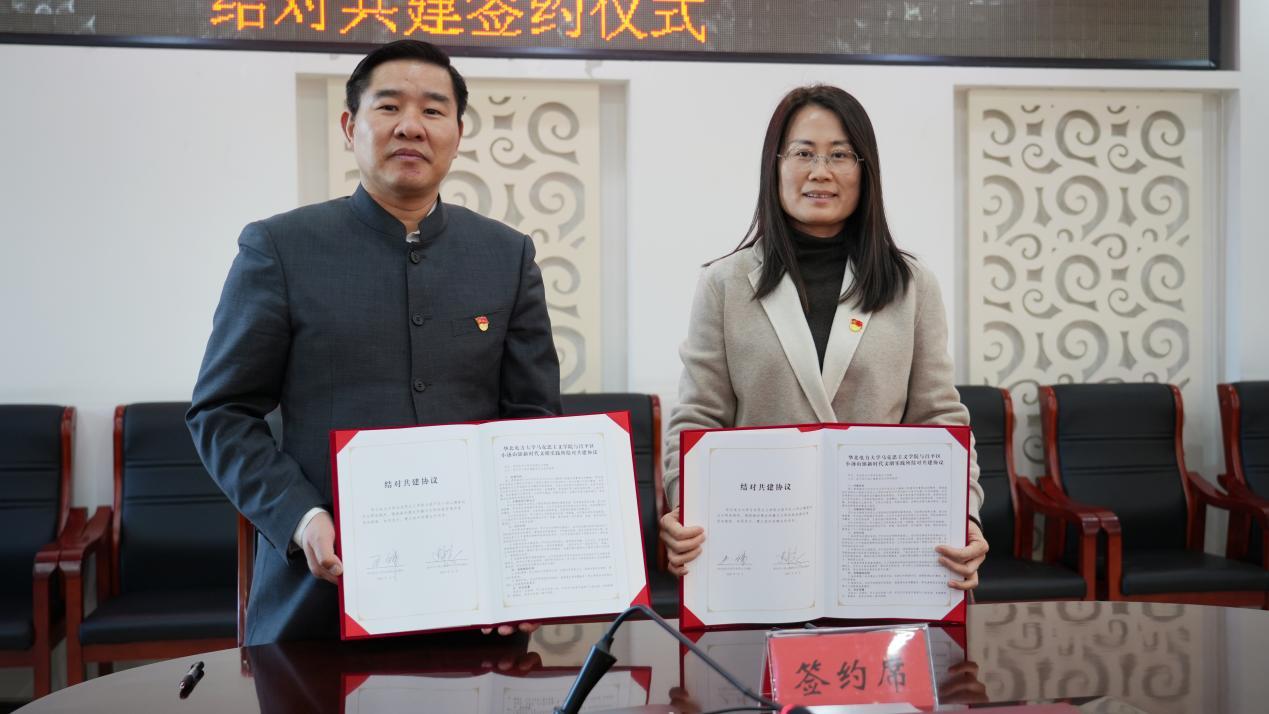 史洋意与王伟代表双方签署了结对共建协议。王艳芬向学院赠送了具有小汤山特色的书画作品,寓意双方情谊深厚、合作长久。