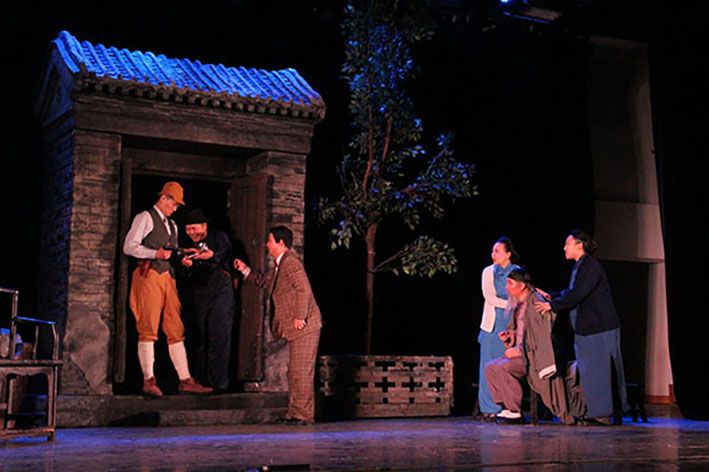 曲剧《四世同堂》改编自老舍创作的同名原著,表现了抗战时期北平沦陷区普通民众的生活与抗战经历。以北平小羊圈胡同作为背景,通过复杂的矛盾纠葛,以胡同内的祁家为主,刻画了当时社会各阶层的人物形象,直白而形象地向观众展示了普通人在大时代历史进程中所走过的艰难道路。