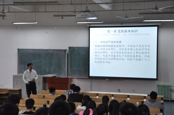刘永前为培训班的做了第一次授课。他讲解了党的基本知识,包括党的组织制度和组织机构、党员的义务与权力、中国共产党的性质等。在对党的基本知识进行详细讲解的同时,他还穿插进行了其他相关知识的讲解,使学员们了解了更多关于中国共产党的发展历程。刘永前幽默风趣的讲解赢得了同学们的阵阵掌声。