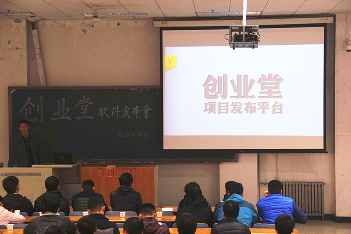 本网保定讯:12月20日上午,由校创业协会主办的“创业堂”软件发布会在教九B101举办,莅临现场的嘉宾有各院系团委副书记、学生会会长及创协协会会长。校创业协会会长兼“创业堂”创办人李文岳担任发布会主讲人。