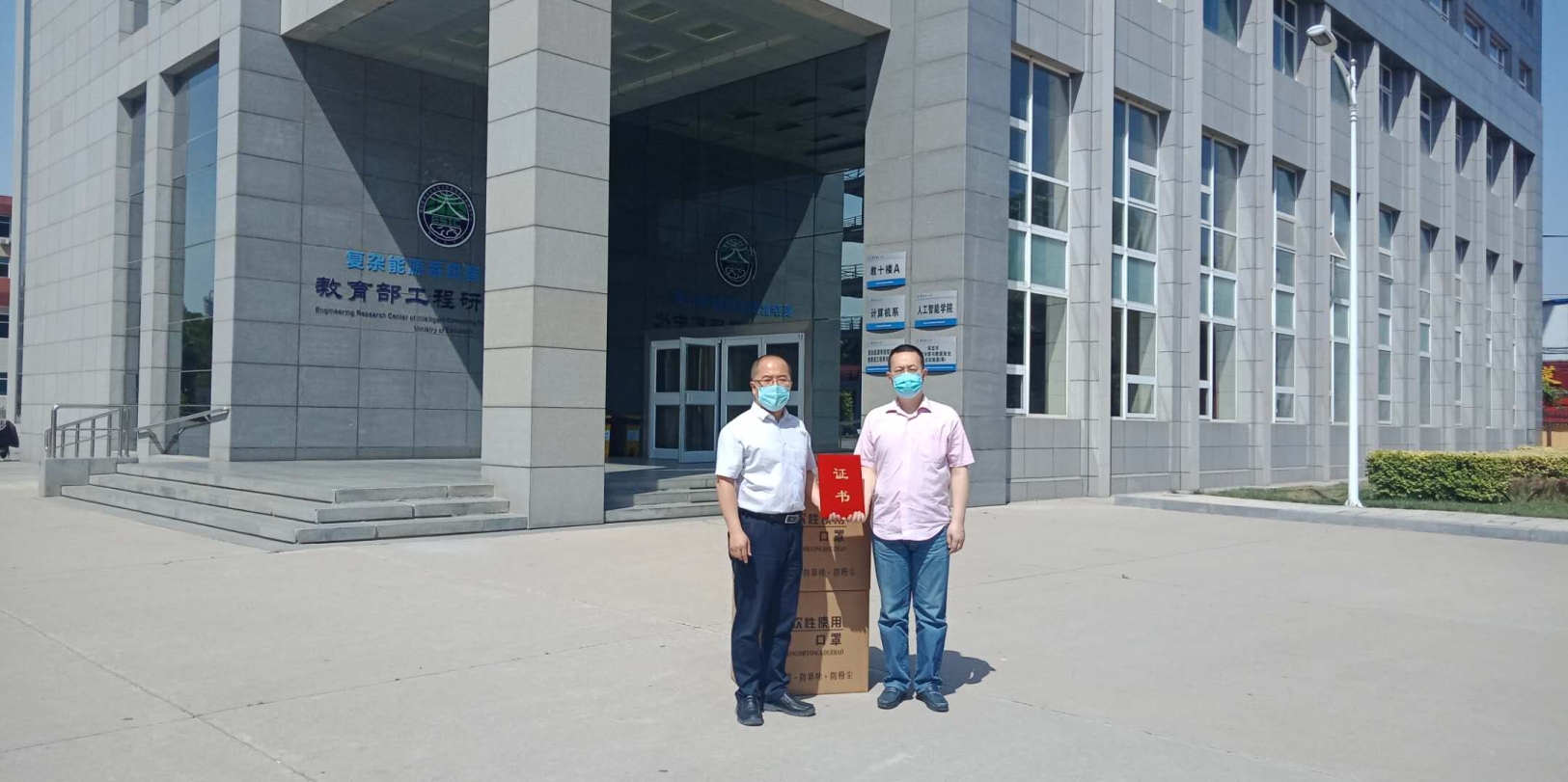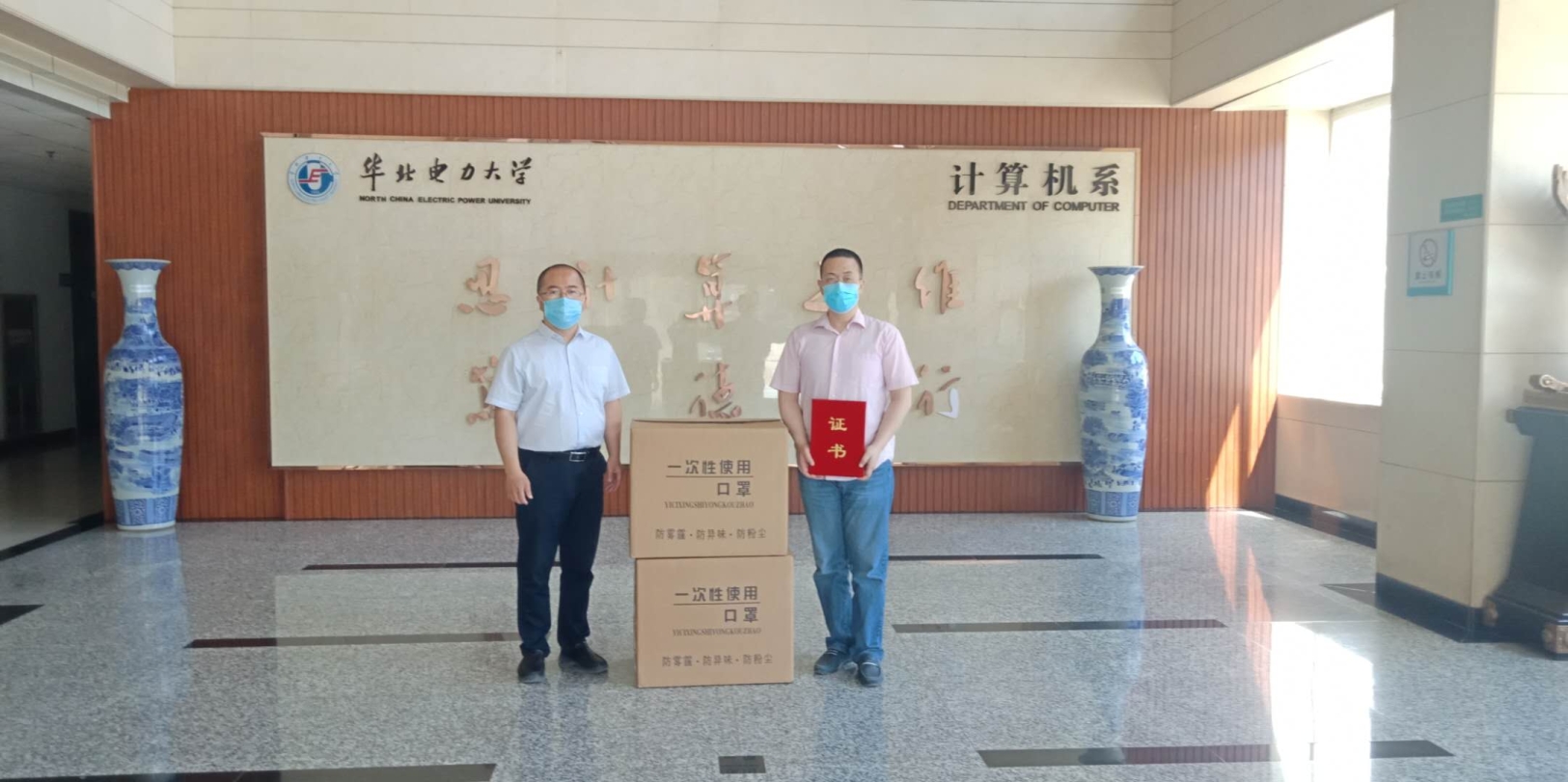本网保定讯:5月28日下午,计算机94级校友、保定市冀能电力自动化设备有限公司总经理刘晓东来校捐赠了5000只口罩,助力计算机系复工复学,计算机系主任鲁斌代表院系接受捐赠。