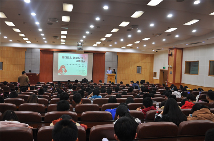 随后,市文明办刘亚辉处长宣读了2014年1月份好人表彰决定并为他们颁奖。市爱心敬老协会会长张平分别讲述了保定好人代表的先进事迹,并播放了一段爱心敬老协会爱心志愿者活动视频。保定市春晖养老院院长、市爱心敬老协会常务理事张俊荣,先后三次被评选为保定市劳动模范;保定市爱心敬老协会会员李春敏,热心公益事业,倾力帮助贫困家庭,曾获“保定市社区爱老敬老模范”称号;已78岁高龄刘世昌老人一直积极参加各类公益活动,几十年如一日的为人民、为社会无私的奉献着,无愧于一名共产党员和全国劳动模范的称号……张平会长激昂的情绪感染了在座同学,同学们近距离感受到了保定好人的高尚品德和人格魅力,不禁用阵阵掌声表达出心中的敬意。