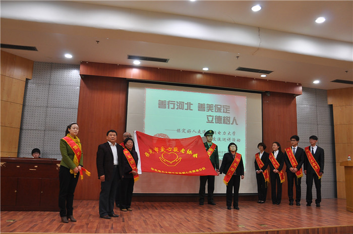 首先,校团委书记赵冬鸣致欢迎词,他提到了我校在雷锋精神的感召下,依托专业特色,开展的多项志愿活动,如向无电区输送设备、人才、服务,用“三位一体”的方式解决群众用电问题、开展绿色电力送上雪域高原等活动。另外,我校还与顺平县政府联合开展“情暖童心”关爱留守儿童项目、面向北市区开展社区团建活动。学校各级青年志愿者协会及爱心组织开展各类“学雷锋、献爱心”活动,使学雷锋活动在校园内蔚然成风。他希望以“保定好人进校园”这一活动为契机,鼓励学生向榜样学习,并用实际行动诠释雷锋精神。