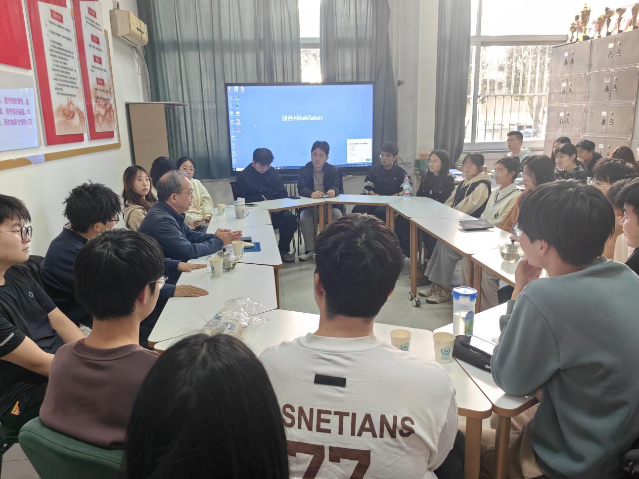 王印松教授对先进控制策略与应用技术研究团队主要研究方向及成果进行了详细介绍,深入浅出地讲解了其研究背景、技术应用及未来发展方向,增强了大家对专业发展的信心与认同。针对同学们的困惑和疑问,王印松教授耐心解答,并结合自身丰富的教学、科研与人才培养经验,给出了具有针对性与指导性的建议。针对考研选择,他解析了学硕与专硕的区别,并指出适合读研的关键在于能“静得下心、坐得住”。谈及自动化专业的发展,他详细讲解了其从智能制造到人工智能等广阔就业前景,鼓励同学们将个人所学与国家发展相结合,在人工智能和国家能源电力行业发展中展现新作为。活动现场,同学们踊跃提问,师生们就专业选择、升学深造、行业发展以及科研素养培养等问题进行了交流讨论。