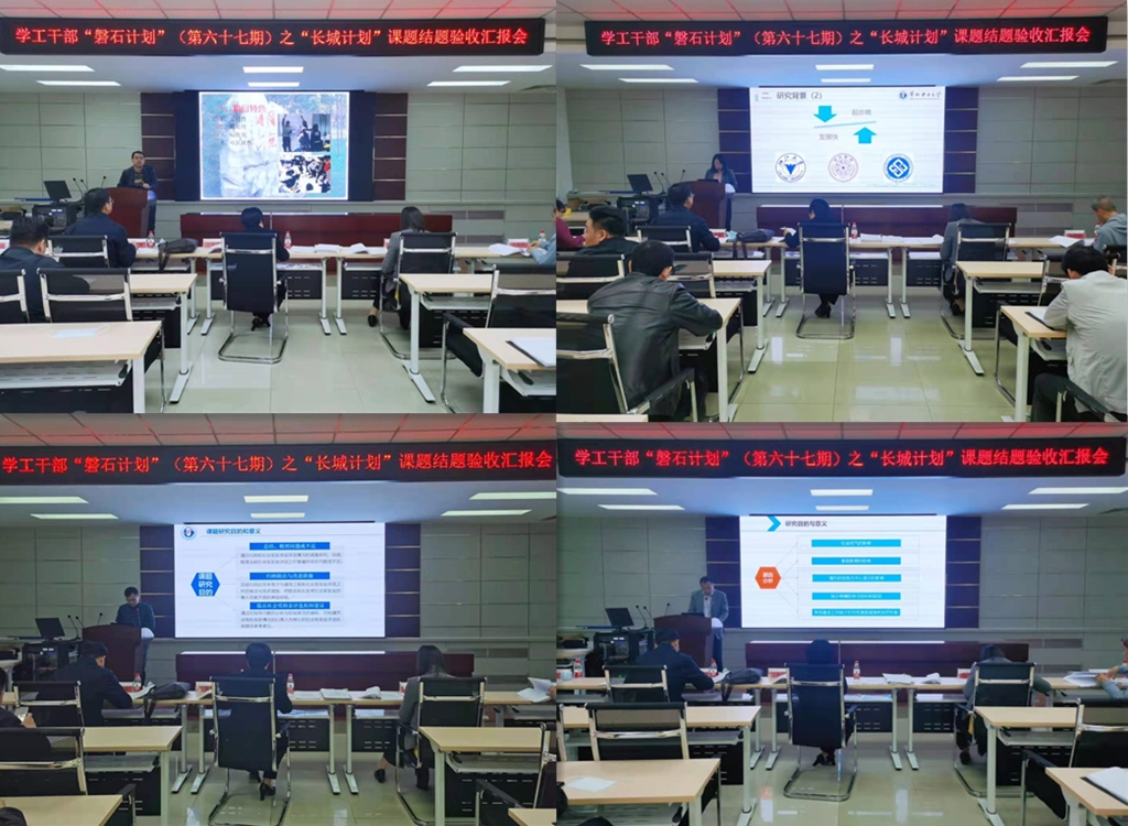 本次共有10个“长城计划”课题申请结题,项目内容涵盖学生思政教育、创新创业教育、国防教育、学风建设、社会实践等研究方向。会上,各项目负责人重点围绕课题完成情况、研究成果、经费使用情况、存在的问题和今后的展望进行了汇报。