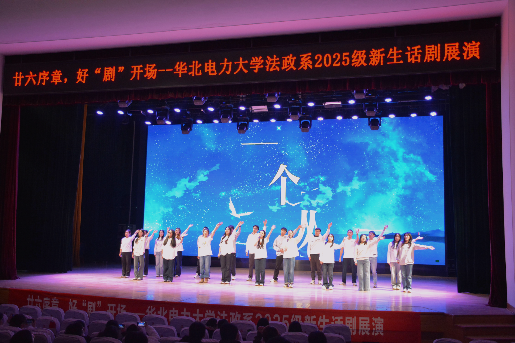 本网保定讯:1月4日晚,法政系“廿六序章,好‘剧’开场”2025级新生话剧展演于一校礼堂精彩上演。系领导班子、各教研室主任、新生班主任、全体辅导员及近300名本科及研究生新生共同观看了演出。