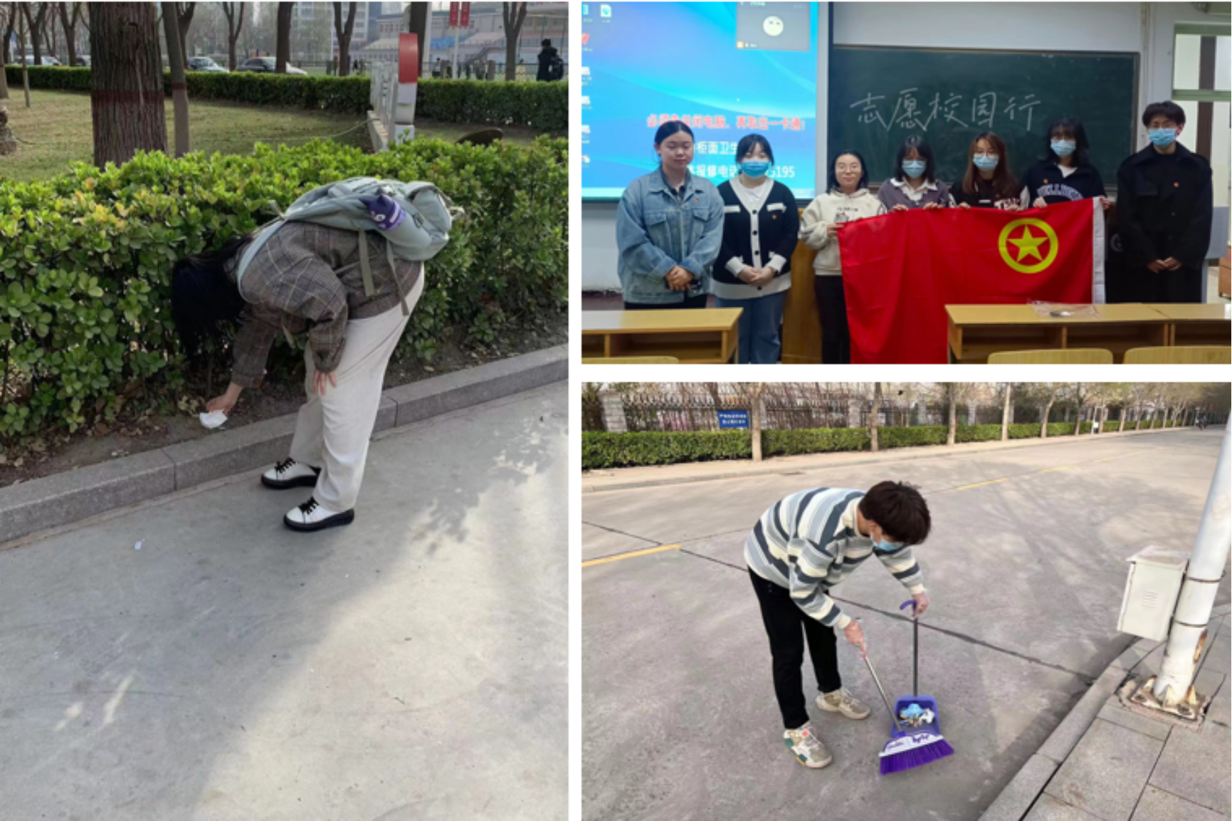 在“信”上出实招,矢志不移传承雷锋精神。英语系各团支部将传承弘扬雷锋精神融入文明校园建设,开展了“践行雷锋精神,美化校园环境”活动,活动中,志愿者对学校篮球场、公园开展了环境卫生清理活动,志愿者们一起清理校园内外垃圾,清扫公园、场馆等公共场所,协助同学进行垃圾分类,用行动感染更多的学生保护校园、美化校园、共建校园。