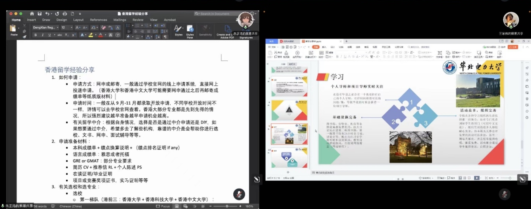 本网保定讯:为充分发挥校友资源的育人功能,进一步提高本科生深造率,3月29日,数理系采用线上形式举办了“知行”校友报告会暨出国出境深造经验分享会,2017级校友王融畅、2018级校友朱正浩、王家伟就出国出境深造的申请流程、项目细节等方面进行了详细解读。本次活动由数理系辅导员牛卓凡主持,部分学生参加。