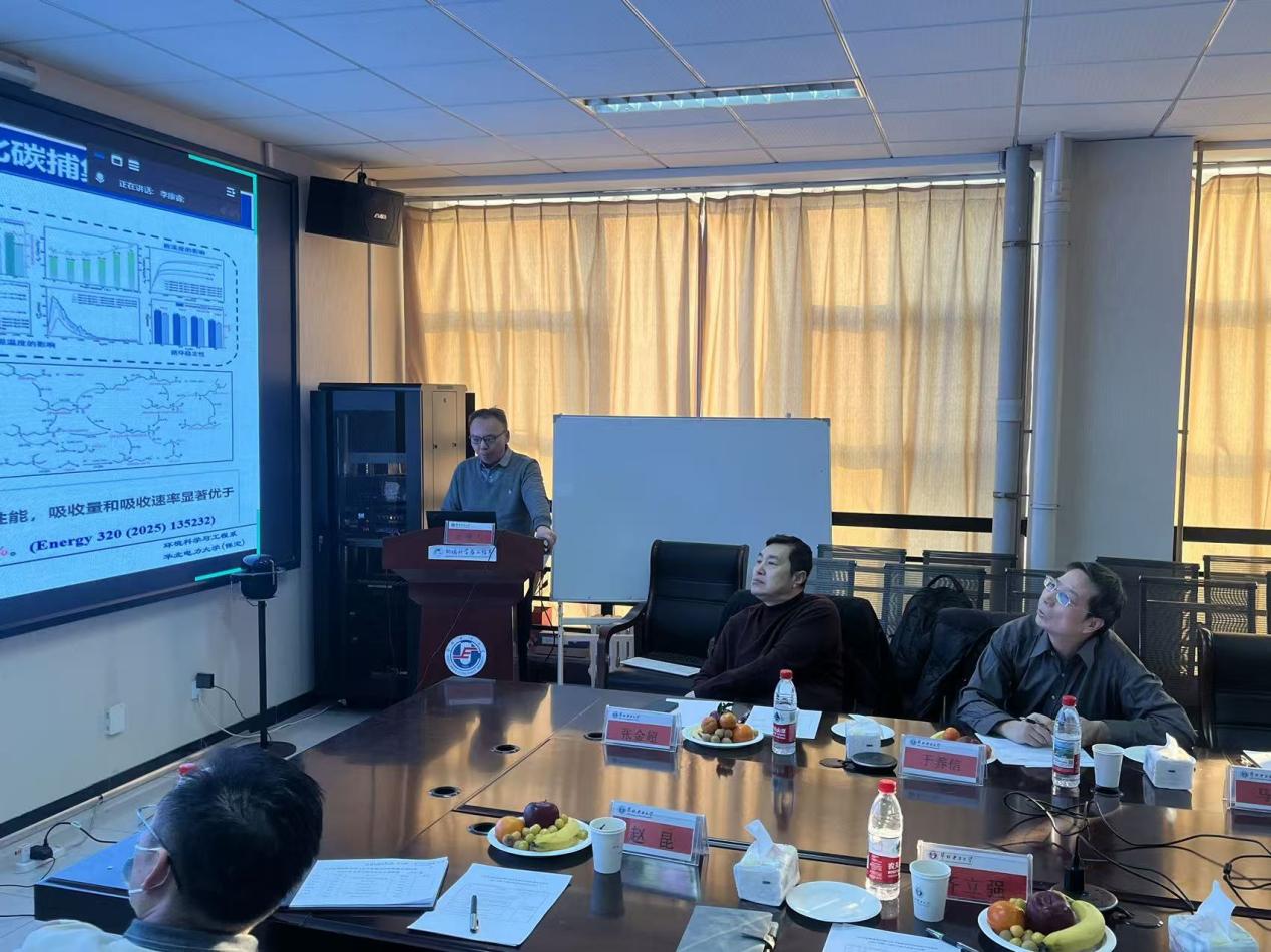 曲伟向与会专家致欢迎词并介绍了参会人员燕赵电力实验室的建设进展。实验室主任付东围绕重点实验建设和燕赵电力实验室“能源电力系统气水协同智理及资源化”团队建设,向与会专家汇报了2025年度工作进展和2026年度工作计划,袁博副教授和赵昆副教授分别进行了题为“微波诱导烟气多污染物低温区催化氧化技术”和“生物质基微球的制备方法及放大应用”的学术报告。
