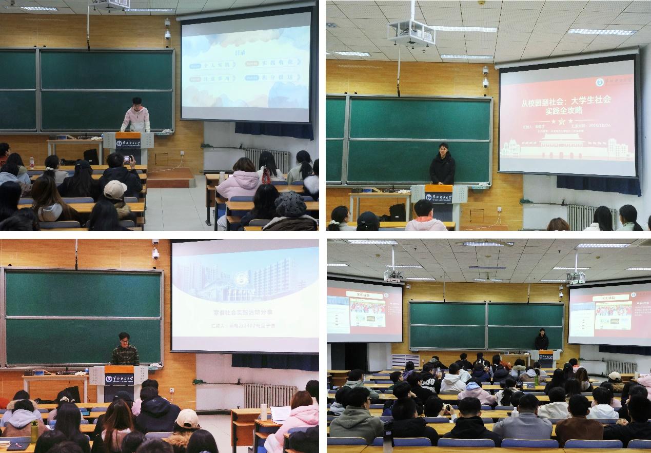 会议特邀上学年社会实践优秀代表与会分享经验,内容主要围绕项目执行、成长收获与成果梳理三大要点展开。硕电力2407班马笠桐介绍了其组织开展少儿科普活动、少儿素质拓展活动、人工智能科普讲座等实践经历,阐述实践带来的个人成长与社会价值,并重点强调从方案策划、人员对接、活动安全到积分报送等注意事项,为同学们提供实用参考;硕电力2409班朱恒江以“第二课堂”为视角,从选题、组队到执行全流程分享经验,结合“迷彩护航·童梦守望”项目,诠释人员分工与节点把控的重要性,为后续实践提供了值得借鉴的思路和方案;硕电力2402班童子豪围绕“红色电力”的实践主题,生动分享了从活动筹备到成果产出的实践历程。团队通过参观绍兴供电公司光明馆,以创作讲解词、拍摄宣传视频、撰写稿件等形式,讲述红色电力故事,彰显华电青年赓续红色精神的昂扬风采。