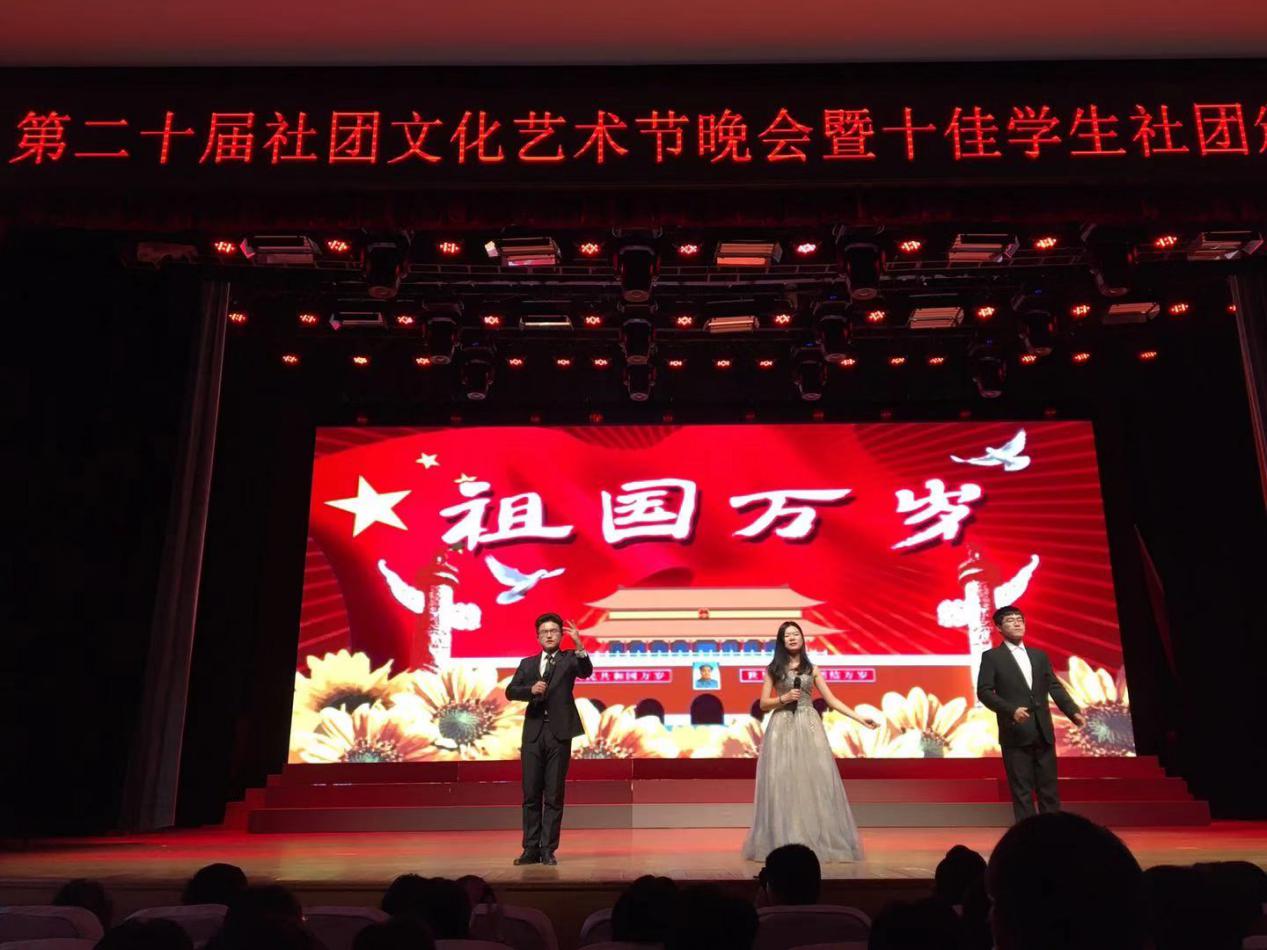 本网保定讯:12月14日晚,由校团委主办的第二十届“社彩耀青春,团聚创未来”社团文化艺术节闭幕式晚会暨“十佳学生社团”颁奖典礼在一校礼堂成功举办。校团委副书记石立宁出席本次晚会,校团委相关人员以及各院系团委、团总支书记参加了本次晚会。