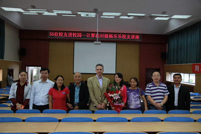 本网保定讯:9月15日下午,由校友会、校团委主办,电子系、计算机系协办的华电大讲堂第174期隆重举行。华为(美国)销售总监、计算机92级校友杨乐乐、Greg Trexler夫妇一起做客华电大讲堂,与同学们一起分享了求学、工作和生活中的心得体会。校团委书记赵冬鸣、党校办副主任陈立伟、校友办主任聂国欣、动力系党总支副书记王韶坡、电子系党总支副书记门万杰、计算机系党总支副书记彭忠军出席活动。