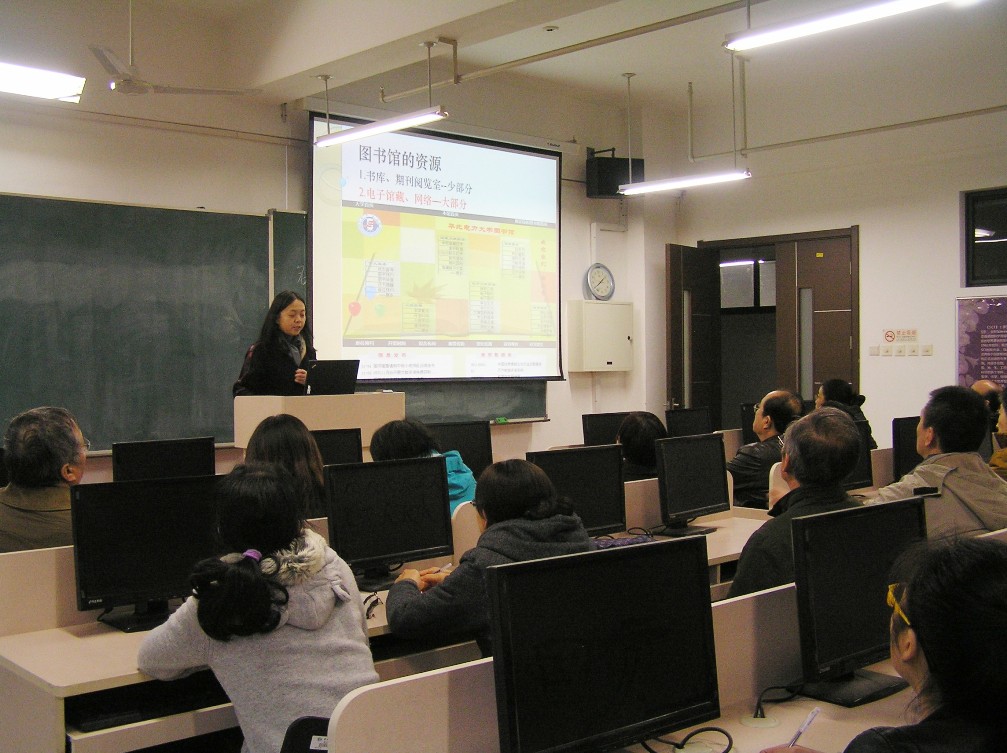 为了进一步提高图书馆一线员工为师生服务的水平,11月10日下午,图书馆专门为流通阅览部和期刊部的工作人员开展了数据库资源培训讲座。讲座由信息咨询部主任方燕虹主讲,馆长刘宗歧、党总支书记李宁、两部门的正式员工和外聘员工及共35人进行了认真学习。