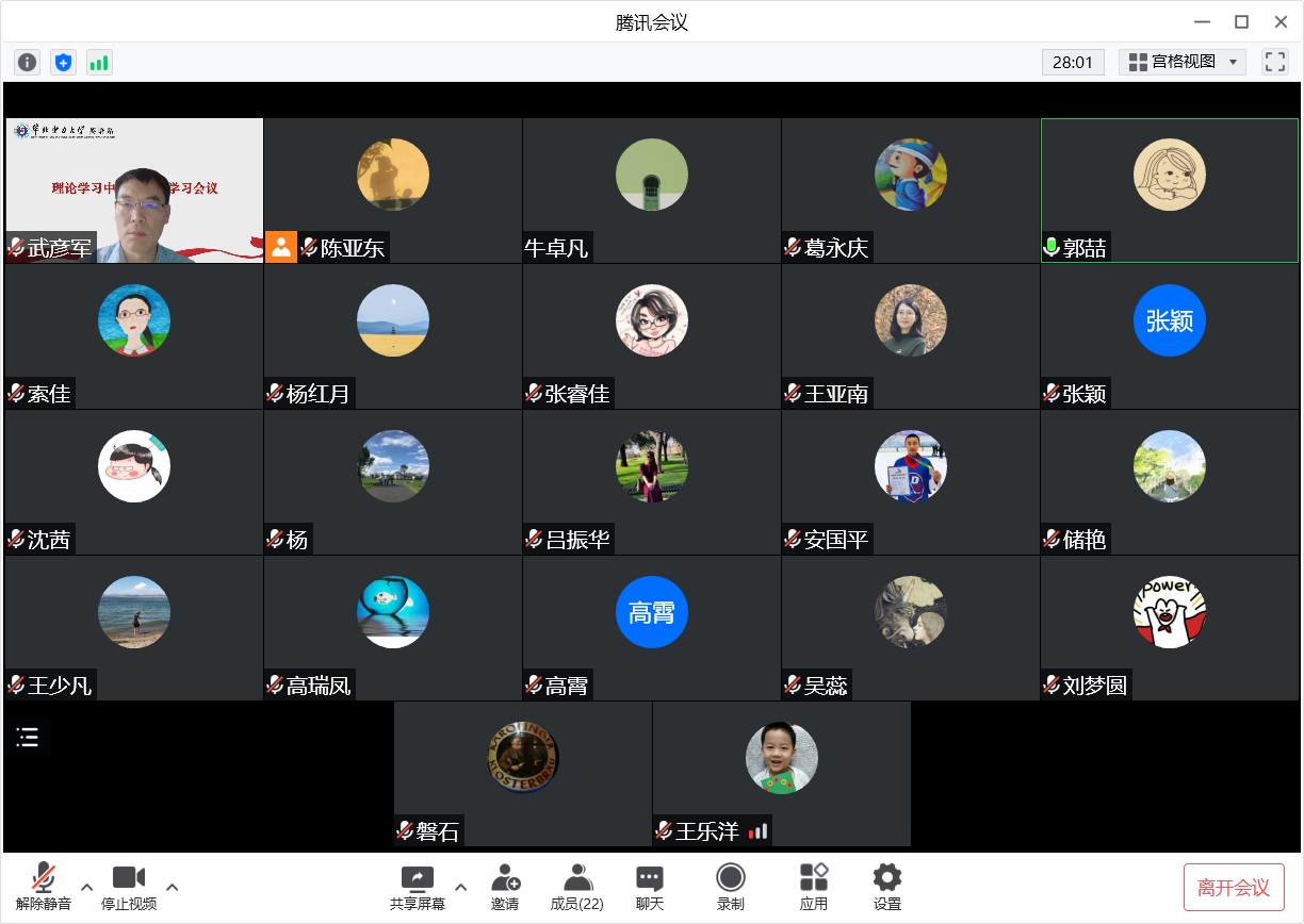 本网保定讯:5月10日下午,英语系线上召开理论中心组学习会议,专题学习习近平总书记在中国人民大学考察时的重要讲话精神。会议由英语系党总支书记武彦军主持,英语系领导班子成员、党总支委员、党支部书记、教研室主任、行政专员、两办人员参加了学习,学校党建联络员葛永庆列席会议。