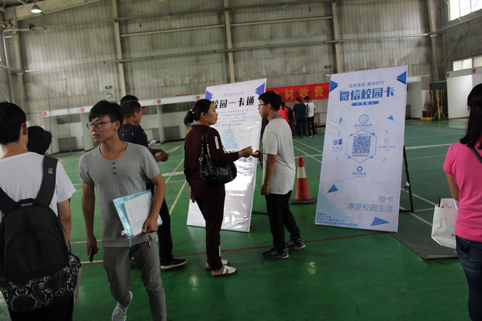 为方便新生迅速掌握用卡知识,尽快熟悉各种绑定、圈存、贴值的操作方法,工作人员提前做好了各种知识介绍展板,摆放到合适位置,新生在关注华电微卡微信公众号后,即可查看校园一卡通服务信息,并及时获知卡务相关通知信息、找到自己需要的操作说明书。