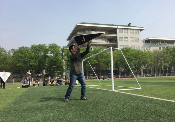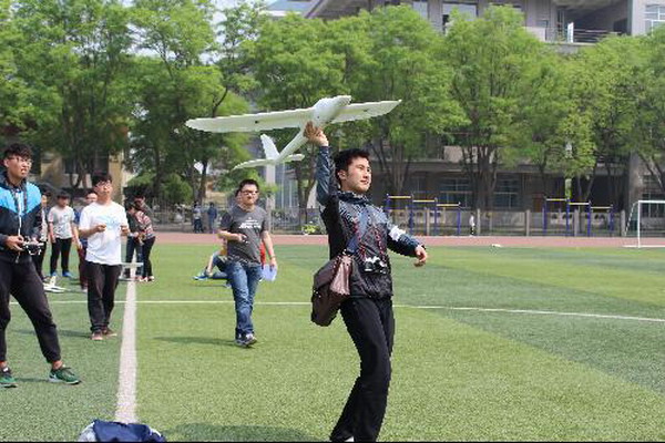 本次比赛面向全校,参赛选手们分别在操场和文体中心进行了电动滑翔机、对地侦查、垂直起降三个项目的比赛。