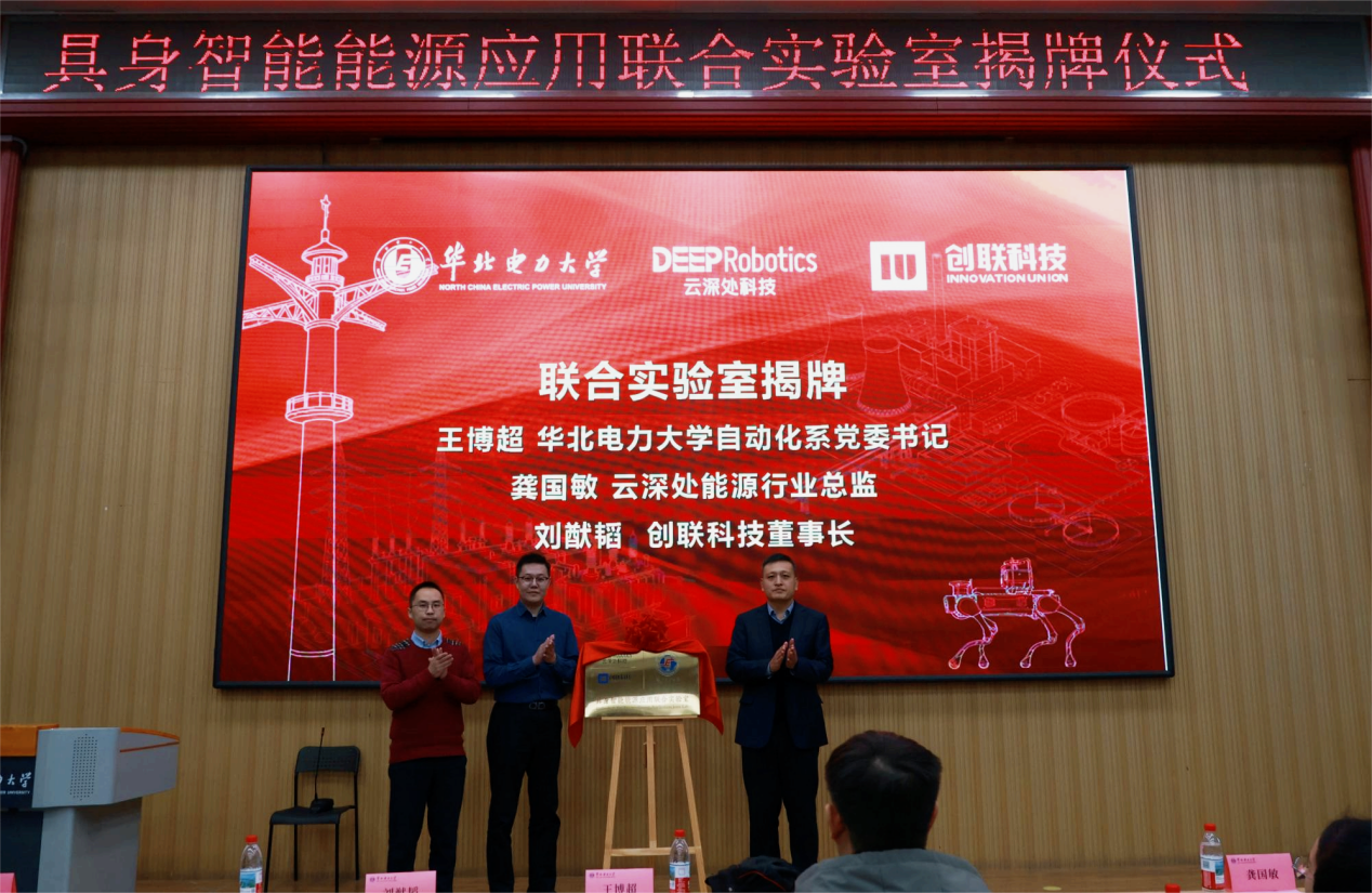 本网保定讯:12月2日,自动化系与杭州云深处科技股份有限公司、北京宏途创联科技有限公司共建“具身智能能源应用联合实验室”揭牌仪式在教六一阶举行。云深处能源行业总监龚国敏、教育行业总监徐刘玉,创联科技董事长刘猷韬,自动化系党委书记王博超、系主任翟永杰、系党委副书记石立宁以及师生代表参加活动。活动由机器人工程教研室主任王祝主持。