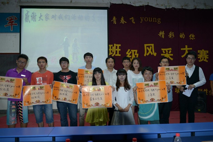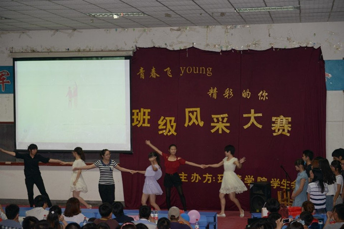 比赛分为班级风采秀及短剧表演两部分。在班级风采秀环节,有的班级用PPT记录下同学们生活中的点点滴滴;有的用一首音乐和诗歌赞颂青春;有的用一部微电影,展现出大学生活的酸甜苦辣;也有班级用一场T台秀展现青春的风采。迥异的表现方式,表现出的却是同一主题:放飞青春,积极向上。