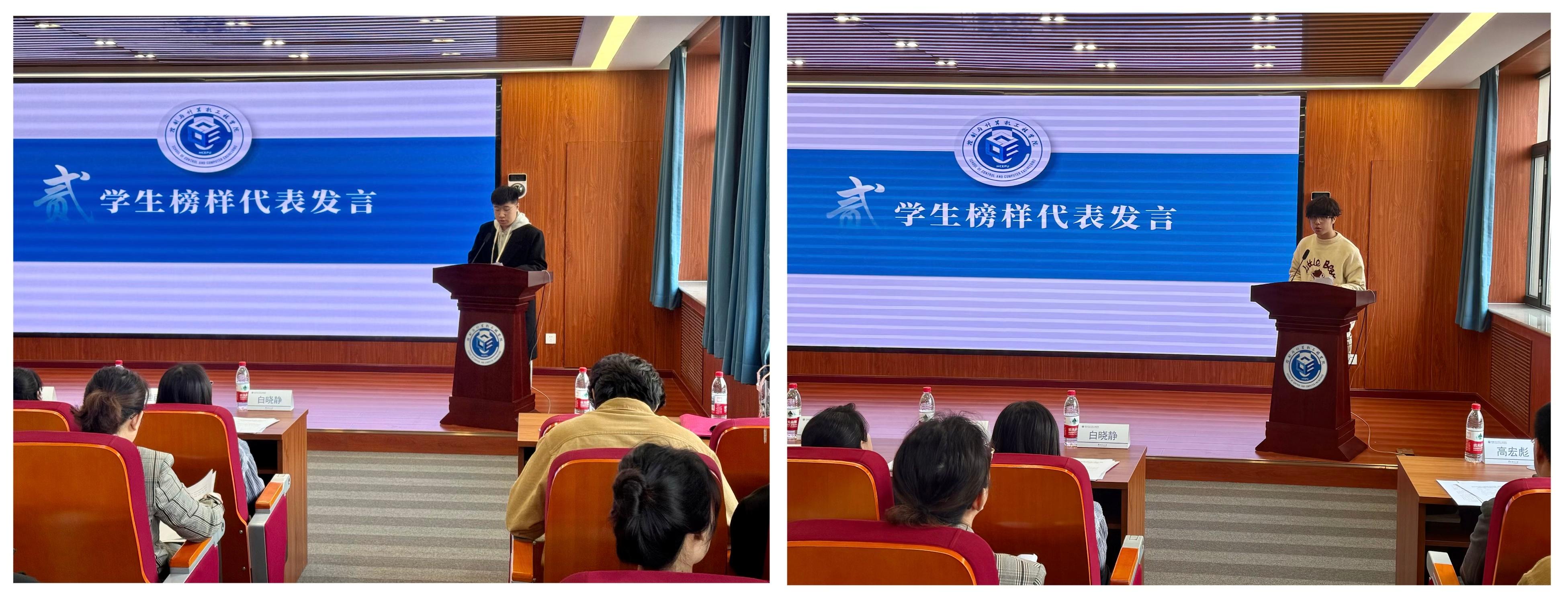 仪式伊始,王玮作大会致辞。他明确了此次活动旨在进一步端正学风、促进学生成长成才,是贯彻落实学校“办一所负责任大学”理念的重要实践,并以师长身份对同学们提出四点期望:把目标定得高一点、把困难想得多一点、把自己管的严一点、把功夫下的狠一点。对新聘任的学业辅导员和“学霸天团”成员提出了三点希望:成为答疑解惑的“小导师”、成为正能量的“传播者”、成为学院与同学之间的“连心桥”。学生榜样代表张晋、余峻炜也结合自身经历,分享了宝贵的学习心得与成长感悟,他们的真诚分享赢得了在场师生的热烈掌声。