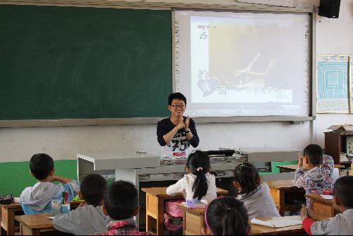 经过一个半小时的车程,队员们抵达了顺平县安阳乡中粮希望小学,按照事先的安排,队员们迅速在教室里布置好教学场地之后走到小朋友身边,和他们进行交流,拉近心与心的距离。和小朋友们稍微熟悉了之后,队员们首先在教室开展了安全卫生教育课,小分队成员吴诚为小朋友讲述了精彩的第一堂课。小朋友们认真听讲,积极与队员进行互动。