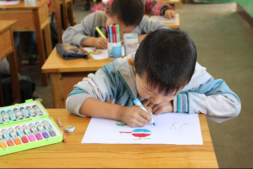 之后进行了简笔画美术课教学。队员们首先在黑板上教给小朋友一些简单的绘画技巧,然后画了一幅完整的沙滩风景。小朋友们争先恐后的进行绘画展示,并得到了画笔作为奖励。通过绘声绘色的教学,带孩子们走入斑斓的绘画世界,激发他们的想象力和创造力,同时也希望通过和孩子们进行简笔画教学,走进孩子们的内心世界。一幅幅色彩斑斓的图画,让队员们看到了孩子们纯真的内心世界,也看到他们装在心底的梦想。