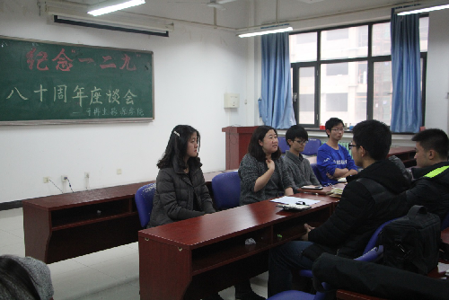 各院系团委、团总支、团支部也纷纷开展特色纪念活动。能源动力与机械工程学院、经济与管理学院、可再生能源学院等多个院系团委开展师生座谈会,回顾“一二·九”运动,学习爱国主义先进事迹以及吴志功书记重要讲话精神,激发当代青年学生干部热情,砥砺前行。