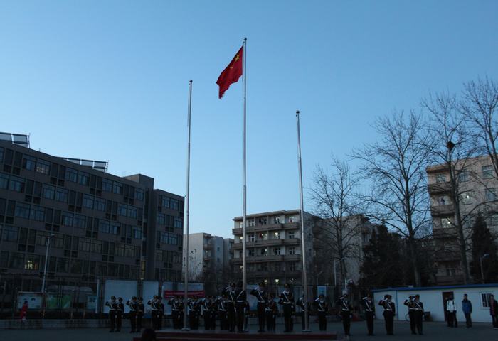 早上六点五十分,踏着熹微的晨光,老师和同学们来到操场,等待一场意义非凡的升旗仪式,迎接“一二·九”初生的太阳。雄壮的中华人民共和国国歌在华电上空响起,鲜艳的五星红旗徐徐上升,同学们用最庄严肃穆的升旗仪式表达了自己对祖国的热爱。