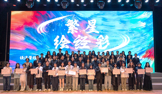 本网保定讯:为发挥朋辈榜样示范引领和践行带动作用,营造积极向上的班级氛围,经济管理系于2025年12月6日在一校区礼堂举办“繁星绘经彩”2025级班级风采大赛暨第十二届“经管之星”颁奖典礼。全体系领导出席并为经管之星和获奖班级颁奖,各年级辅导员、2025级班主任和学生共同参与了本次活动。