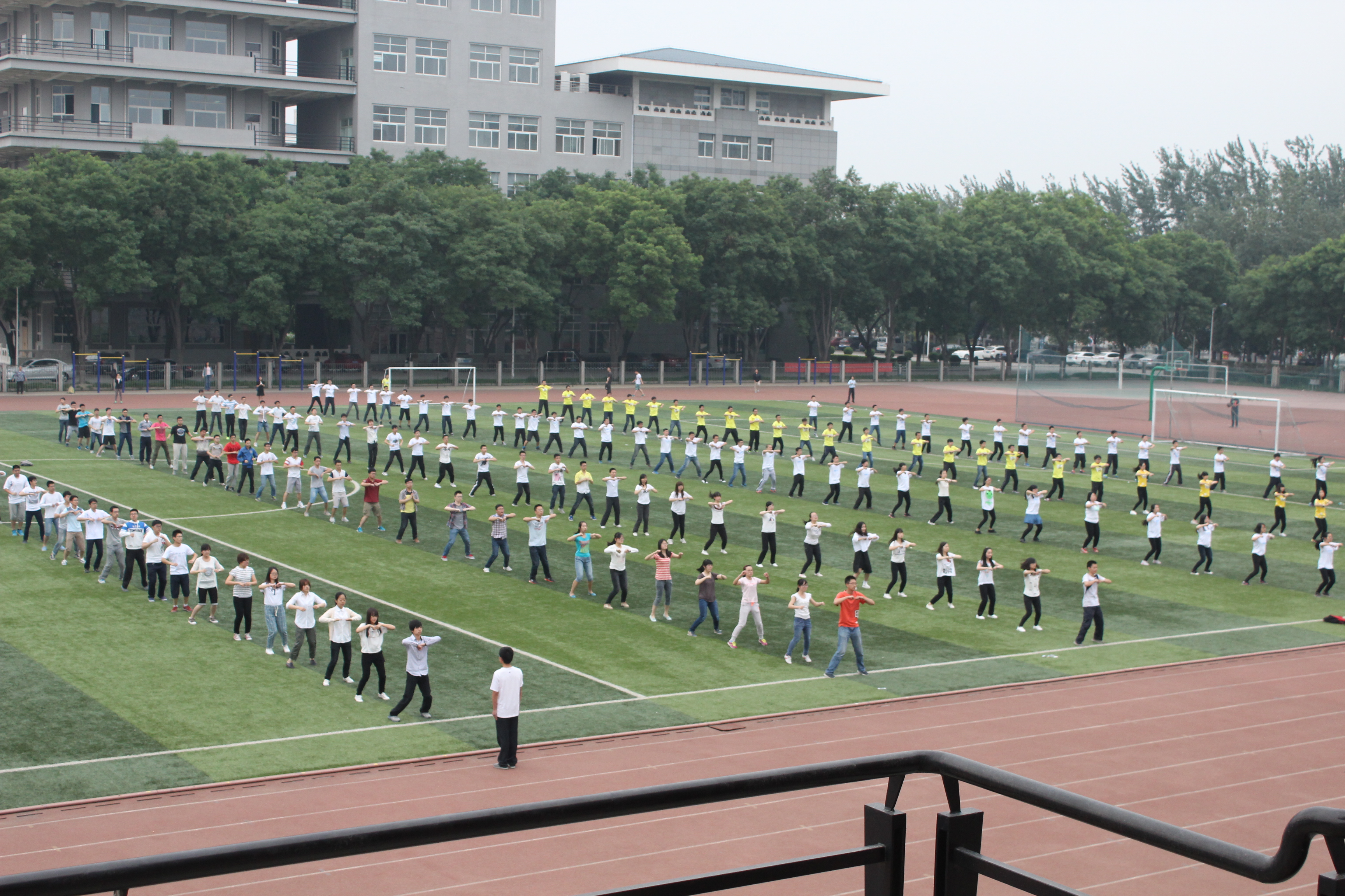 广播操比赛于本学期初启动,得到了同学们的积极响应,一度掀起电力系广播操练习的热潮,各班级利用课余时间组织练习。预赛分别于4月30日、5月14日上午进行,共有10个班级成功晋级决赛。