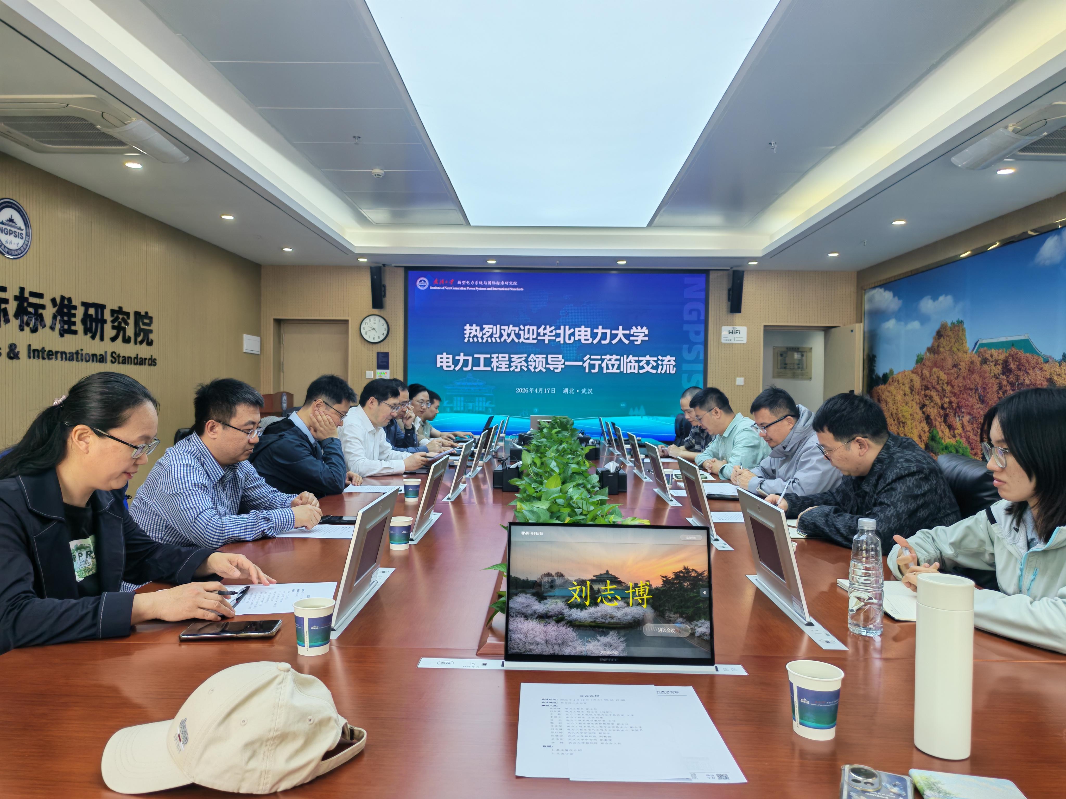 在武汉大学新型电力系统与国际标准化研究院,学院副院长何旺龄、张继宏副教授等参加座谈交流。双方聚焦新型电力系统下,标准化与专业课程的深度融合、国际化标准融入课程建设的落地举措、产教协同共建标准化课程实践体系等方面进行了深入探讨。双方达成共识,校际共同建设优质课程、开发优秀教材、开展教学改革项目,以促进电力标准化复合型人才的培养。