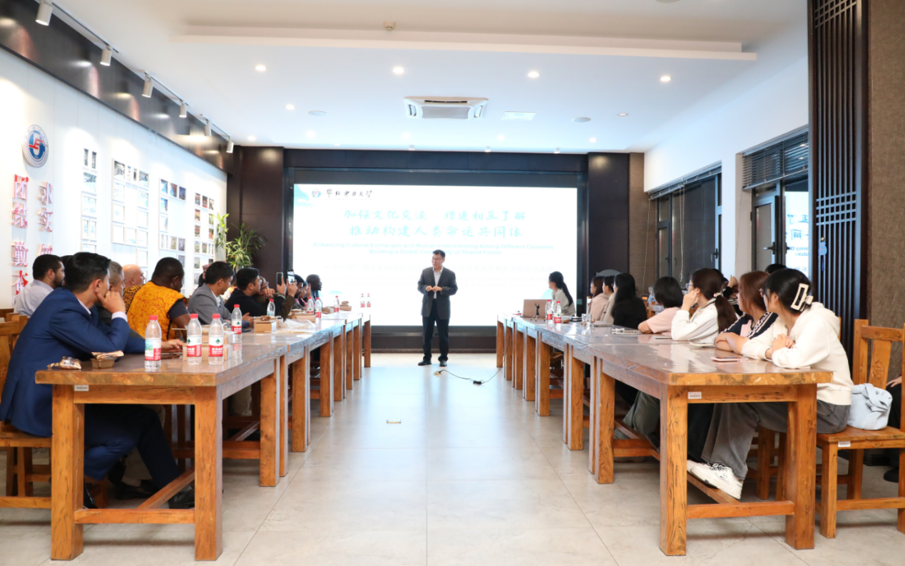 研修班学员参与热情也非常高涨,踊跃分享了各自国家的历史文化、节日风俗与特色美食等。从塞拉利昂国旗的深刻含义,到约旦神秘而独特的死海奇观,再到尼泊尔宏伟的寺庙建筑,以及老挝优美的民族舞蹈等,都令在场师生沉浸其中、视野大开。