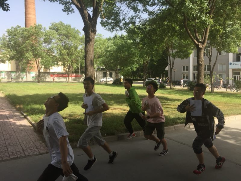 下午3时,规则宣读完毕后,随着主持人的一声令下,同学们纷纷冲出教室,奔向照片所提示的任务点。在炎炎烈日下,随处可见奔跑讨论的队员,即使大汗淋漓、气喘吁吁,他们依然争分夺秒、热情满满。从操场到三餐,从教十到日新园,队员们根据线索在校园内各个景观处进行仔细比对。其中有一张照片可谓别出心裁,它拍摄于徬晚,以日新园中桥的局部砖块为近景,以岸边的绿草为远景,摄影角度独特,使活动更富挑战性。很少有参赛者能一眼看出此任务点,大家边走边讨论,放慢脚步,走入各个校园小路,寻找任务点的同时体验夏日里绿草小花相伴的曲径通幽之美。精彩的唱国际歌、你画我猜、投掷飞镖等游戏则巧妙地融入历史元素,让喜欢研究历史的同学兴奋不已。